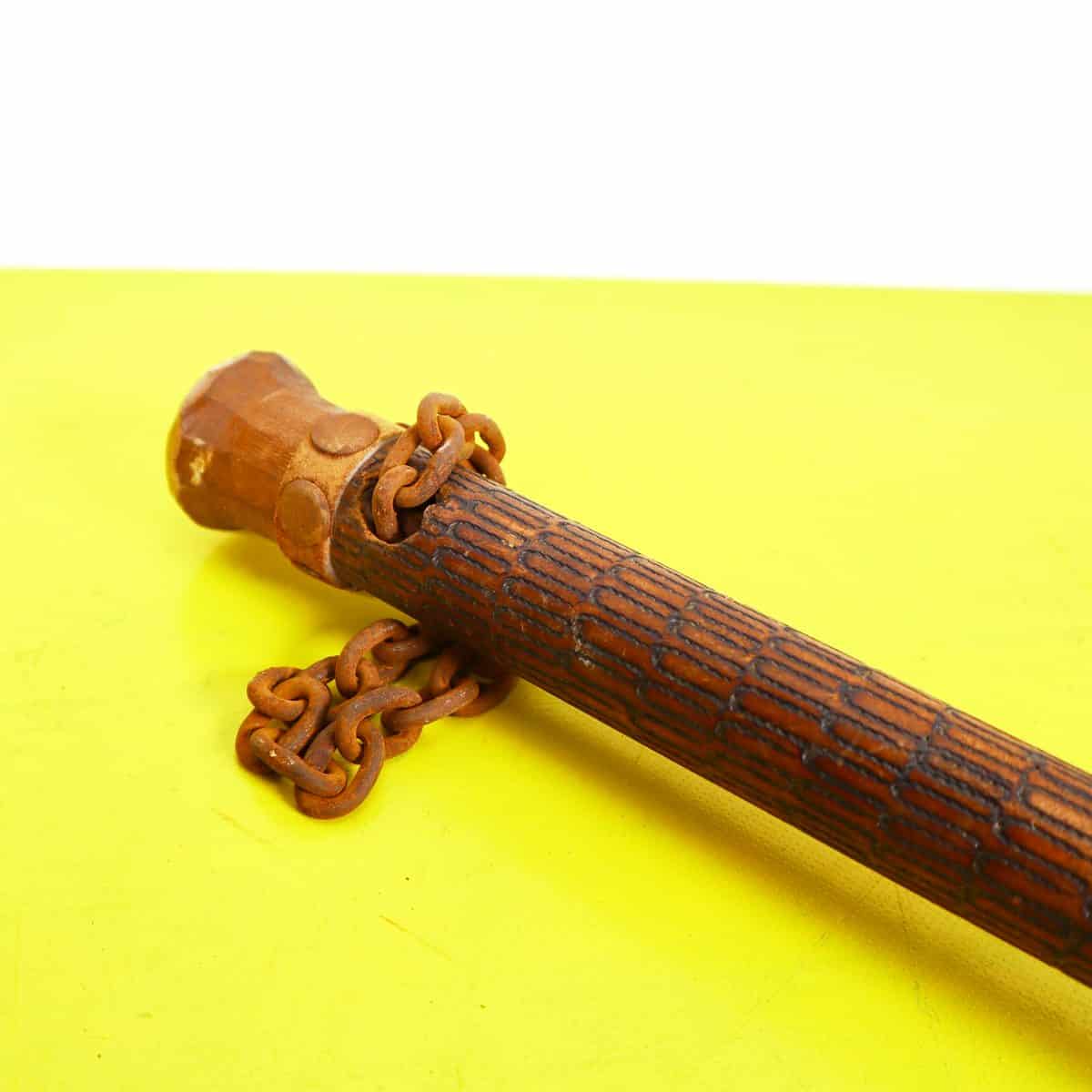 Questa mazzetta dallo stile unico combina legno e metallo per creare un oggetto di design affascinante. Realizzata con legno lavorato a mano e dettagli in metallo, la mazzetta presenta un corpo robust... Questa mazzetta dallo stile unico combina legno e metallo per creare un oggetto di design affascinante. Realizzata con legno lavorato a mano e dettagli in metallo, la mazzetta presenta un corpo robusto e una testa decorata con punte acuminate, tipica di un'epoca passata. Il contrappeso in metallo e' attaccato con una catena, dando al pezzo un aspetto vintage e rustico. Ideale come elemento decorativo per case di ispirazione medievale o come un pezzo unico da collezione, questa mazzetta racconta storie e trasmette un'atmosfera di forza e autenticita'. Altro