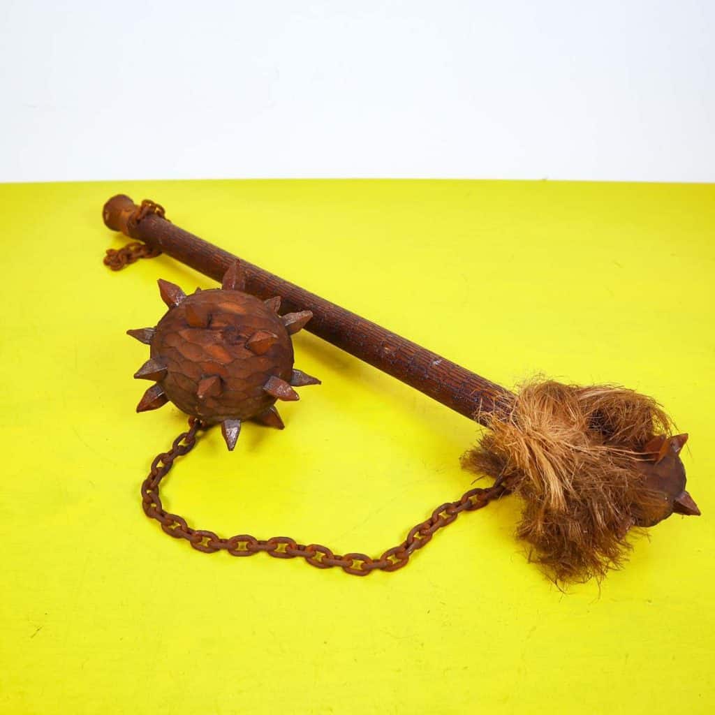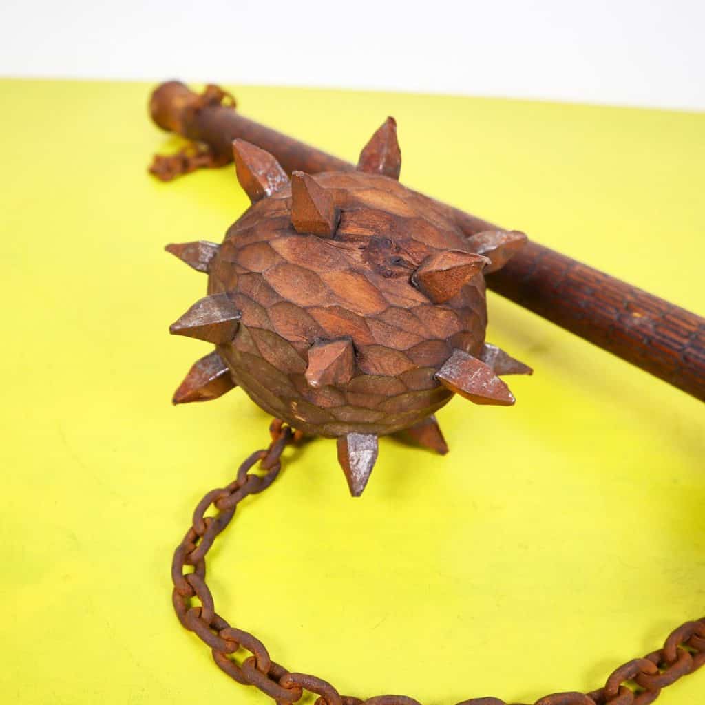 Questa mazzetta dallo stile unico combina legno e metallo per creare un oggetto di design affascinante. Realizzata con legno lavorato a mano e dettagli in metallo, la mazzetta presenta un corpo robust... Questa mazzetta dallo stile unico combina legno e metallo per creare un oggetto di design affascinante. Realizzata con legno lavorato a mano e dettagli in metallo, la mazzetta presenta un corpo robusto e una testa decorata con punte acuminate, tipica di un'epoca passata. Il contrappeso in metallo e' attaccato con una catena, dando al pezzo un aspetto vintage e rustico. Ideale come elemento decorativo per case di ispirazione medievale o come un pezzo unico da collezione, questa mazzetta racconta storie e trasmette un'atmosfera di forza e autenticita'. Altro