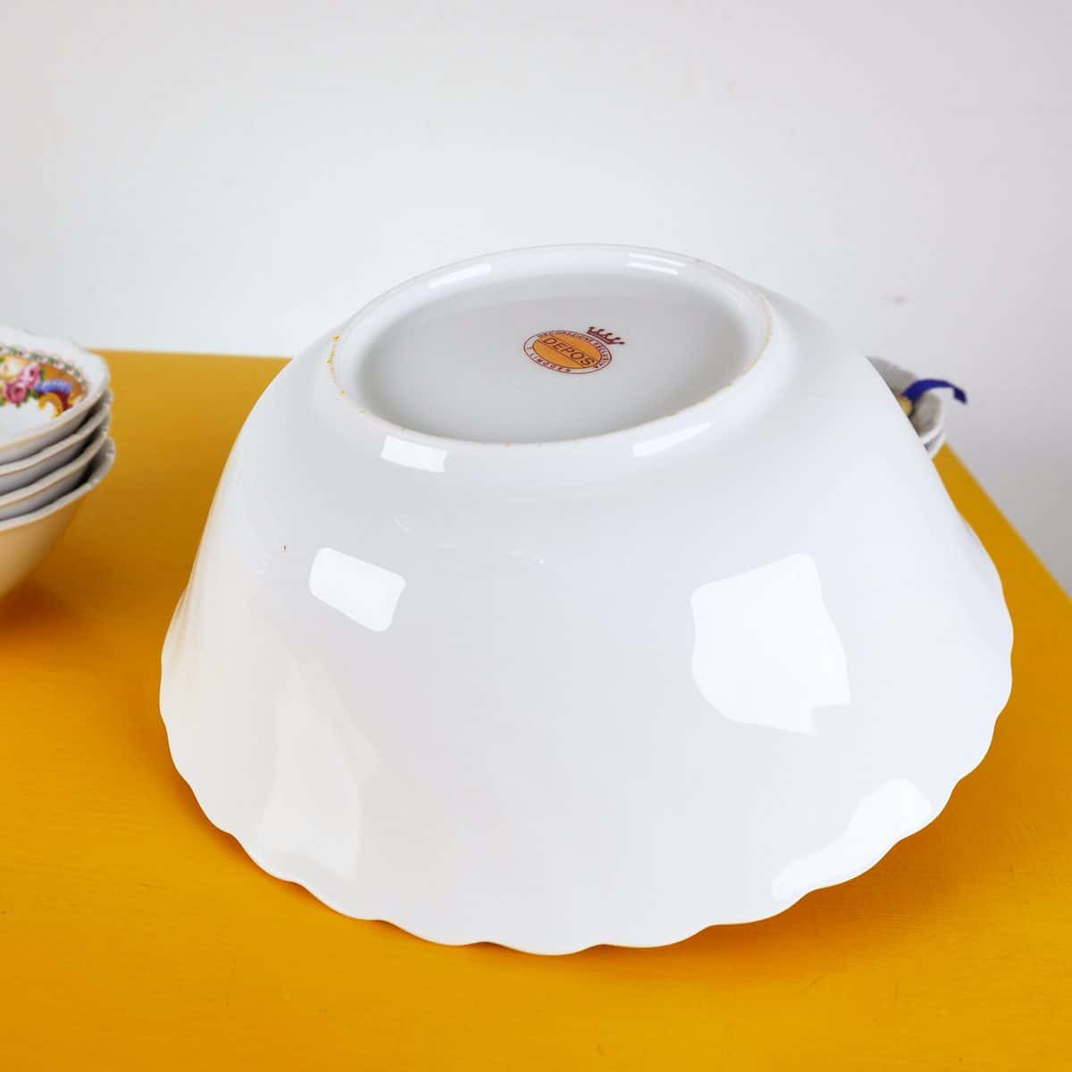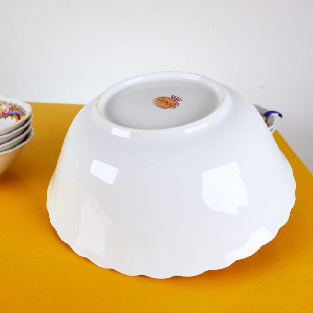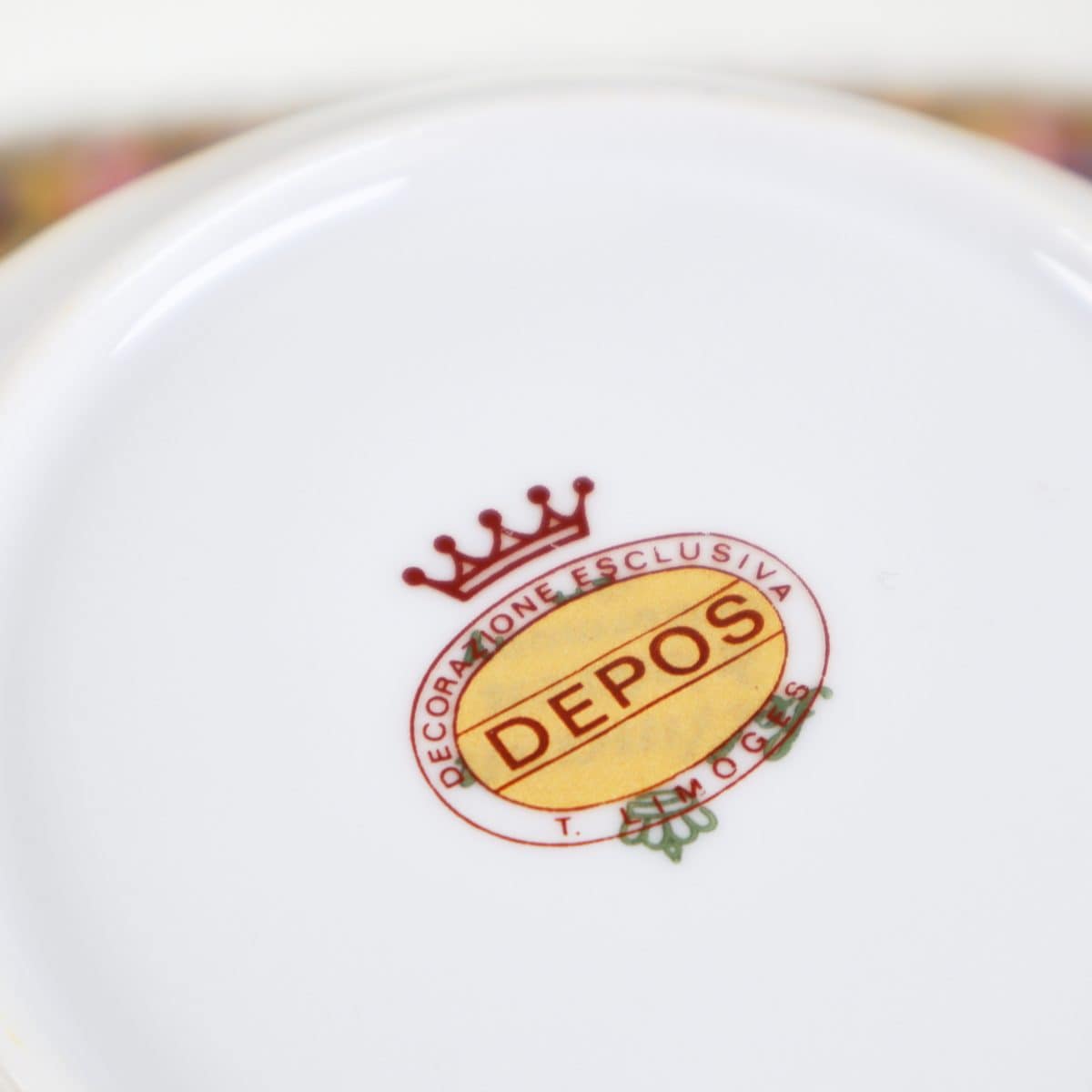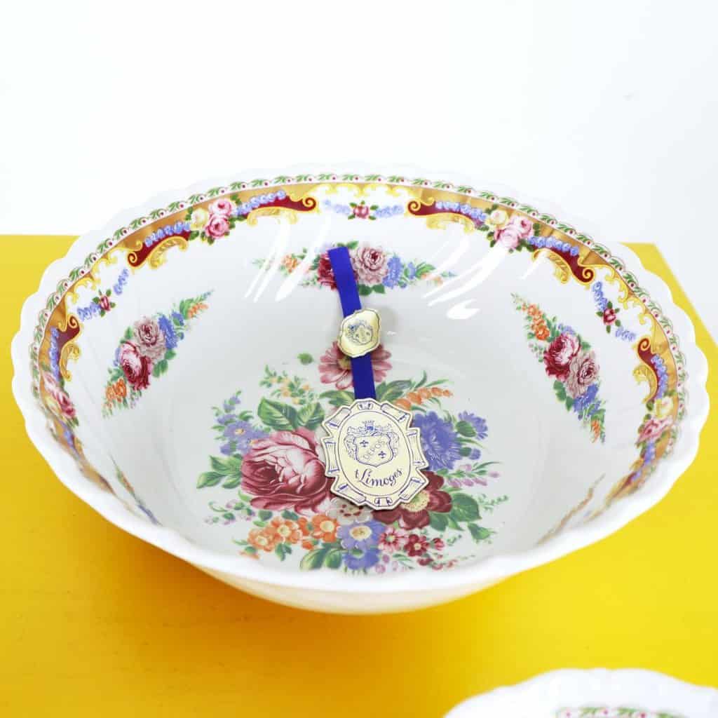 Scopri questo raffinato servizio di piatti in porcellana Limoges, composto da una ciotola grande e sei piatti fondi decorati con un delicato motivo floreale. Le tonalità vivaci dei fiori, tra cui rose... Scopri questo raffinato servizio di piatti in porcellana Limoges, composto da una ciotola grande e sei piatti fondi decorati con un delicato motivo floreale. Le tonalità vivaci dei fiori, tra cui rose e margherite, si armonizzano perfettamente con l"elegante cornice dorata e il design ondulato degli spigoli dei piatti. Realizzato con maestria in Francia, questo set è ideale sia per occasioni formali che per l"uso quotidiano, aggiungendo un tocco di classe alla tua tavola. Tutti gli articoli sono in buone condizioni, con segni di usura leggeri che ne attestano la storia e l"autenticità. Perfetto per collezionisti o semplicemente per chi ama l"arte della tavola. Altro
