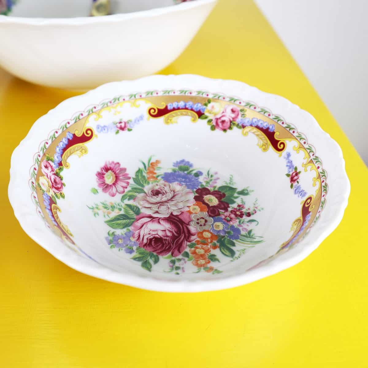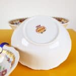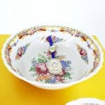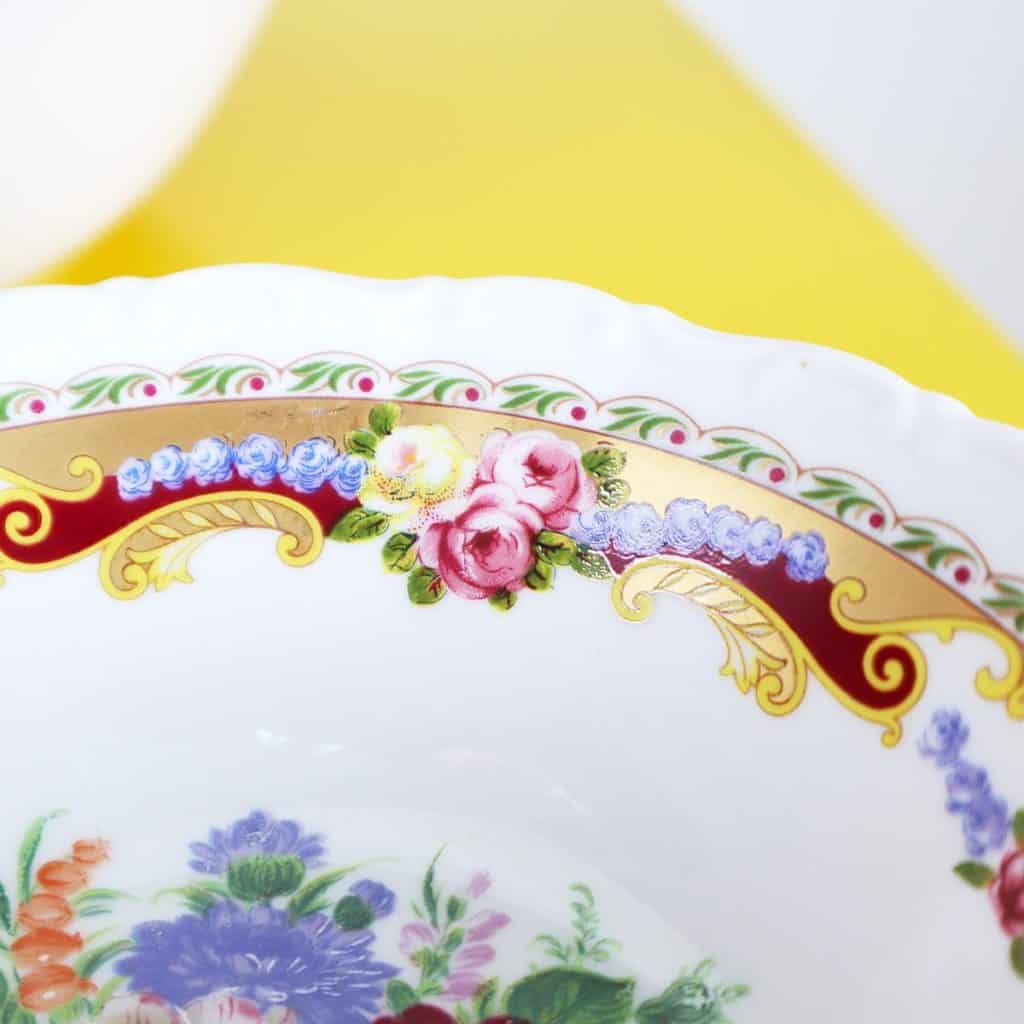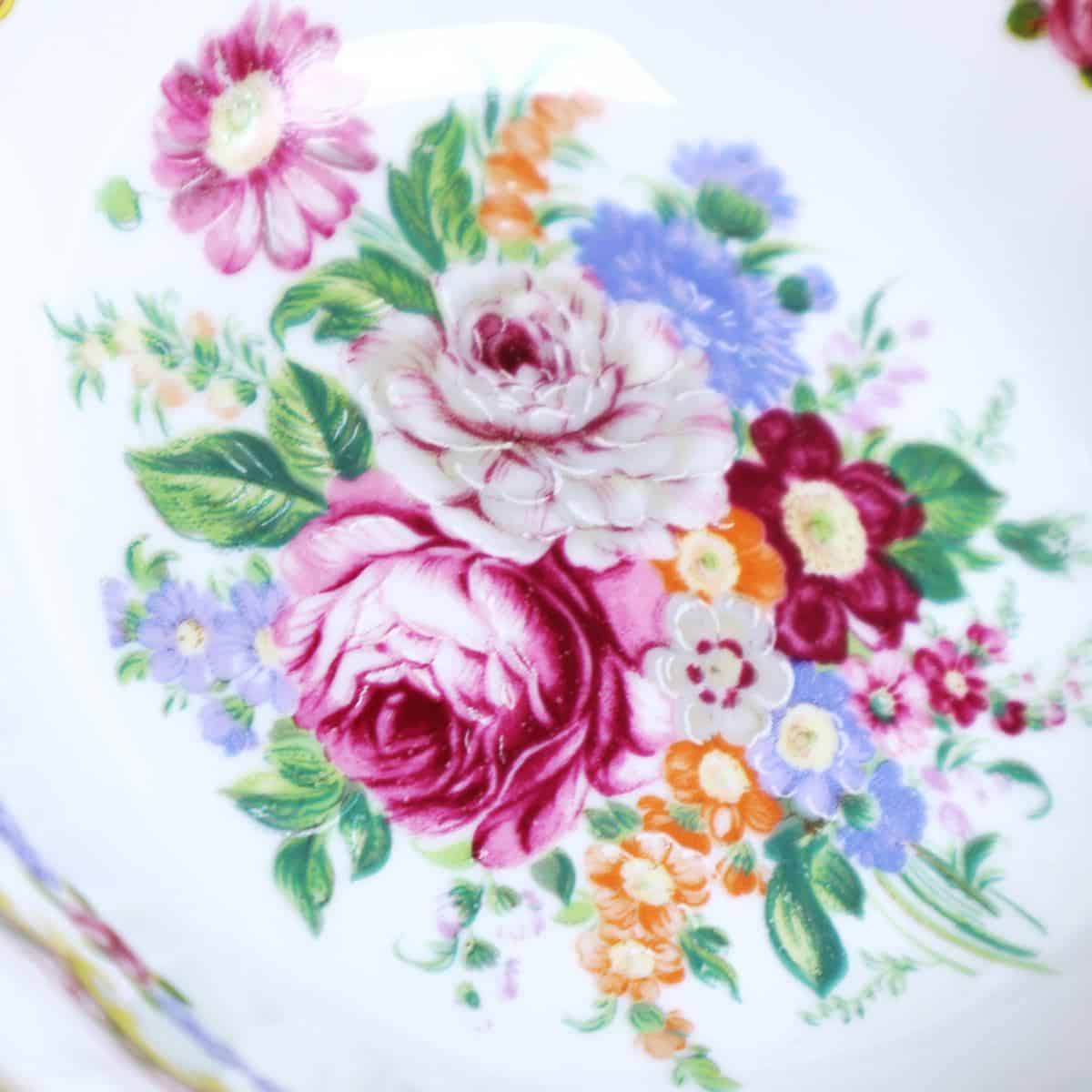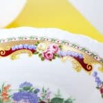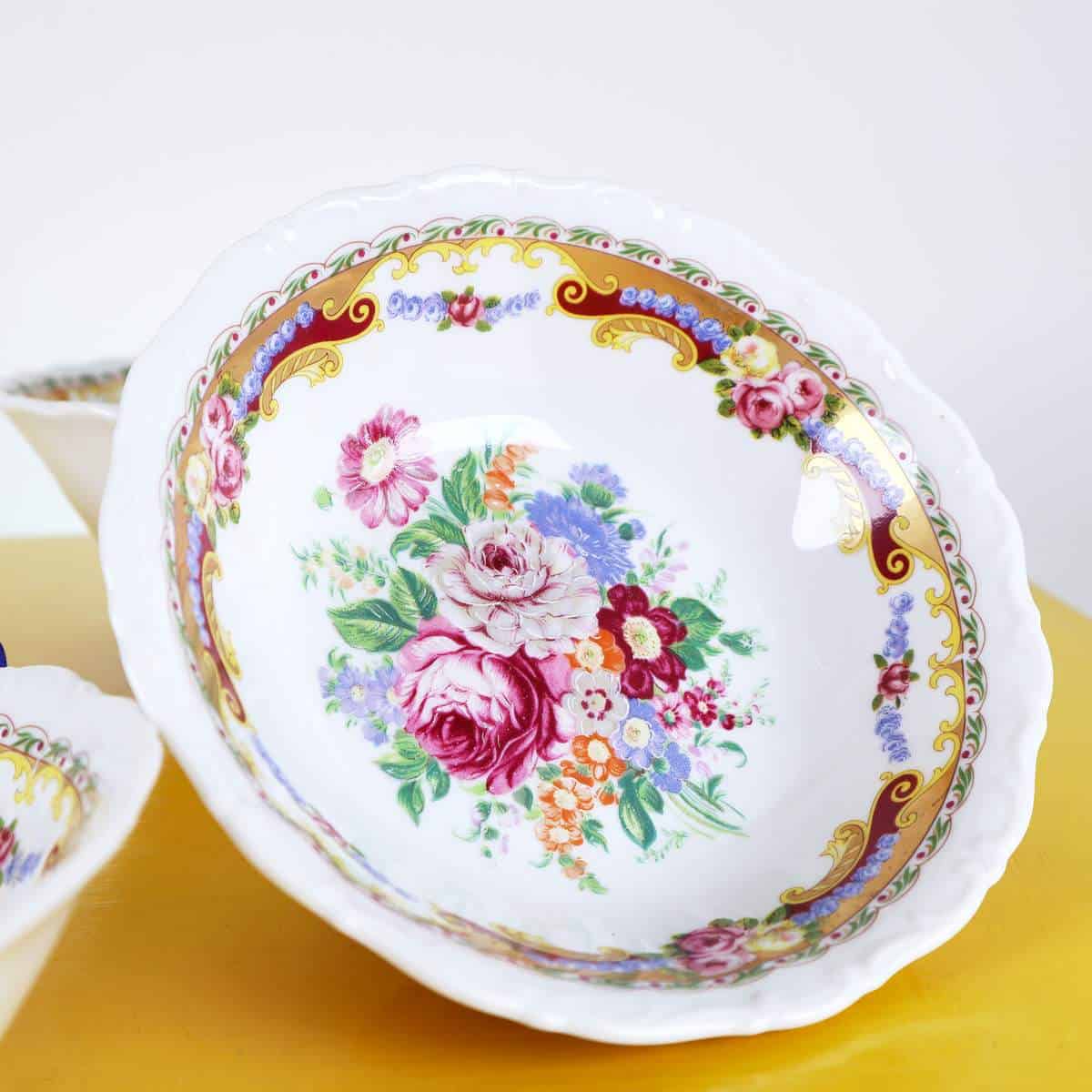 Scopri questo raffinato servizio di piatti in porcellana Limoges, composto da una ciotola grande e sei piatti fondi decorati con un delicato motivo floreale. Le tonalità vivaci dei fiori, tra cui rose... Scopri questo raffinato servizio di piatti in porcellana Limoges, composto da una ciotola grande e sei piatti fondi decorati con un delicato motivo floreale. Le tonalità vivaci dei fiori, tra cui rose e margherite, si armonizzano perfettamente con l"elegante cornice dorata e il design ondulato degli spigoli dei piatti. Realizzato con maestria in Francia, questo set è ideale sia per occasioni formali che per l"uso quotidiano, aggiungendo un tocco di classe alla tua tavola. Tutti gli articoli sono in buone condizioni, con segni di usura leggeri che ne attestano la storia e l"autenticità. Perfetto per collezionisti o semplicemente per chi ama l"arte della tavola. Altro