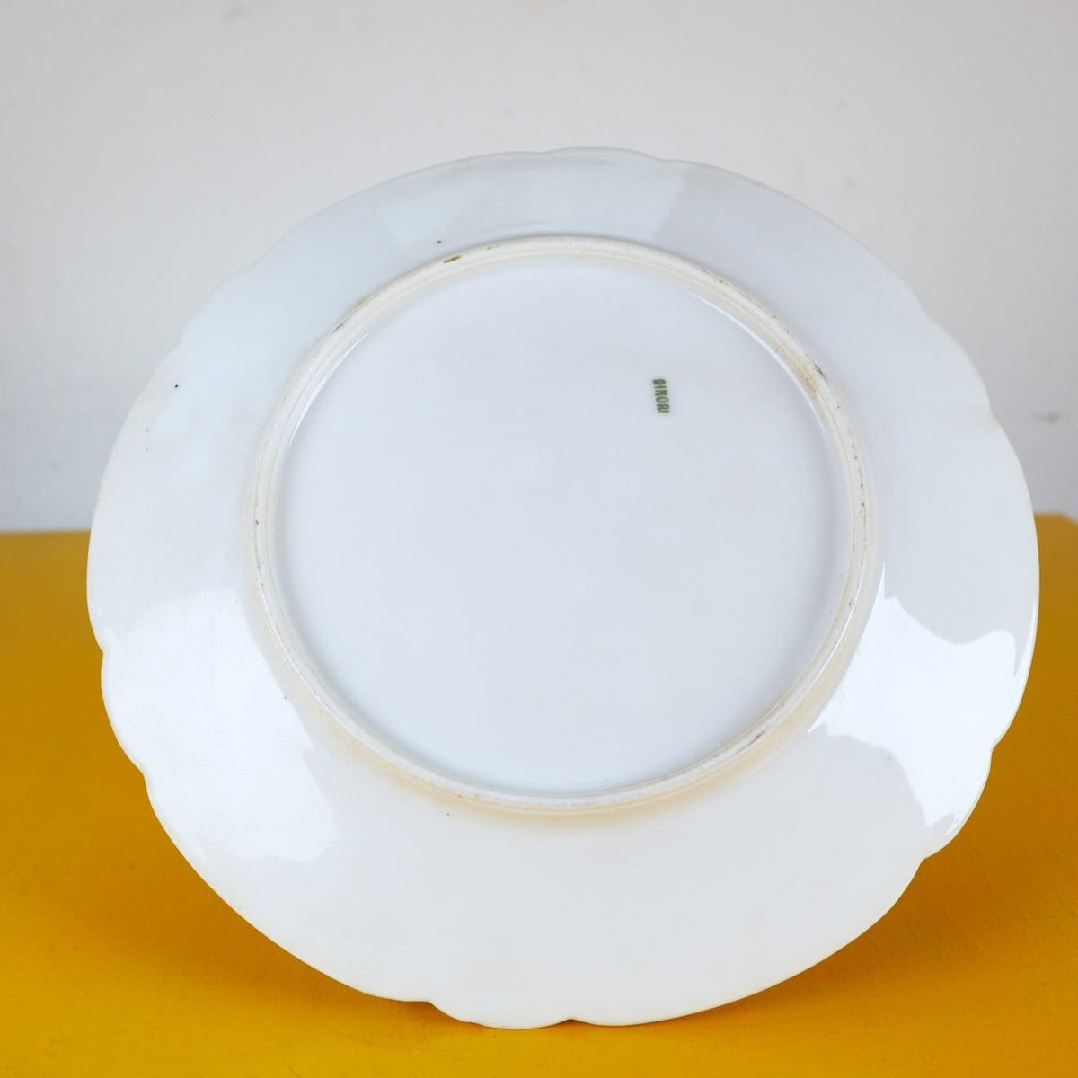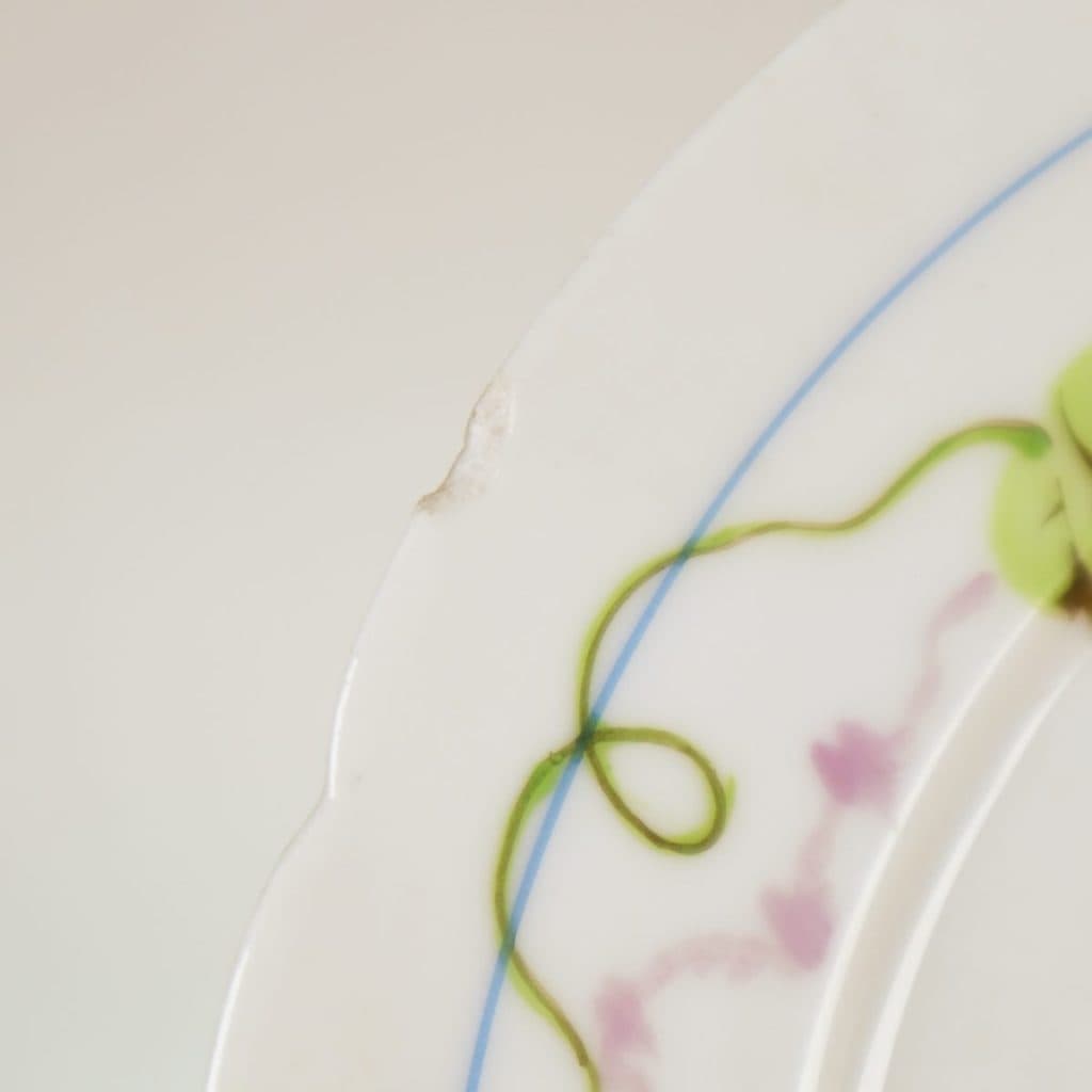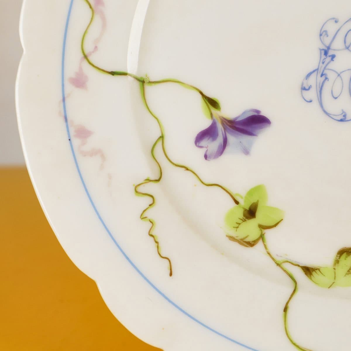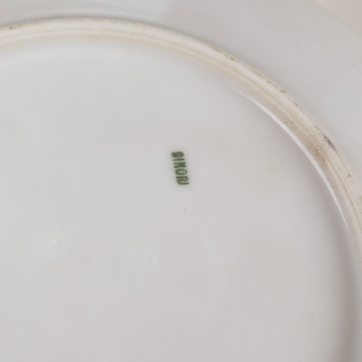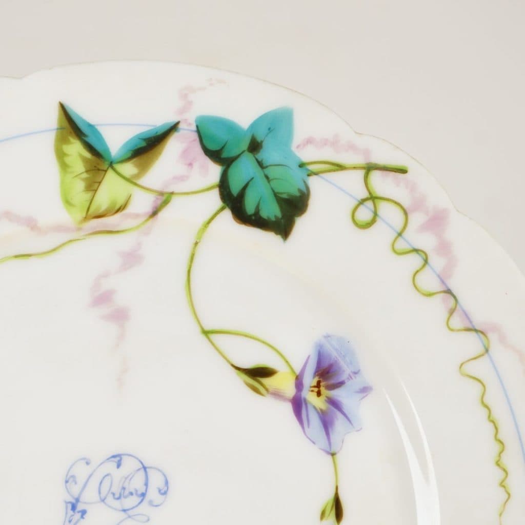 Questo elegante piatto in porcellana Ginori, decorato con fiori delicati e fogliame, rappresenta un esempio straordinario di artigianato italiano. Realizzato a mano, presenta un design raffinato con t... Questo elegante piatto in porcellana Ginori, decorato con fiori delicati e fogliame, rappresenta un esempio straordinario di artigianato italiano. Realizzato a mano, presenta un design raffinato con tonalita' di blu, verde e rosa che si intrecciano attorno a un bordo scallopato. La patina della porcellana e le leggere imperfezioni raccontano una storia di eleganza e servizio. Perfetto per collezionisti o come elemento decorativo per una tavola sofisticata, questo piatto puo' essere utilizzato per esporre dolci o come oggetto da collezione. Un pezzo di storia da aggiungere alla tua casa. Altro