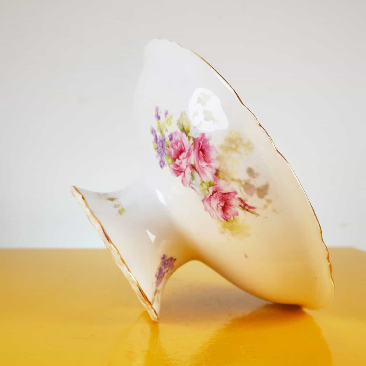 Questo raffinato centro tavola in porcellana, prodotto da Ginori, e' caratterizzato da un design elegante con decorazioni floreali nei toni del rosa e del verde. La forma con base a pedestallo co... Questo raffinato centro tavola in porcellana, prodotto da Ginori, e' caratterizzato da un design elegante con decorazioni floreali nei toni del rosa e del verde. La forma con base a pedestallo conferisce una nota di raffinatezza, mentre il bordo dorato aggiunge un tocco di lusso. Realizzato con maestria, presenta finiture delicate che esaltano la sua bellezza. Ideale per la tua tavola durante occasioni speciali o come pezzo decorativo in vetrina. Perfetto per ospitare dolci o frutta, questo oggetto e' un vero e proprio pezzo d'arte che celebra l'eleganza del design italiano. Altro