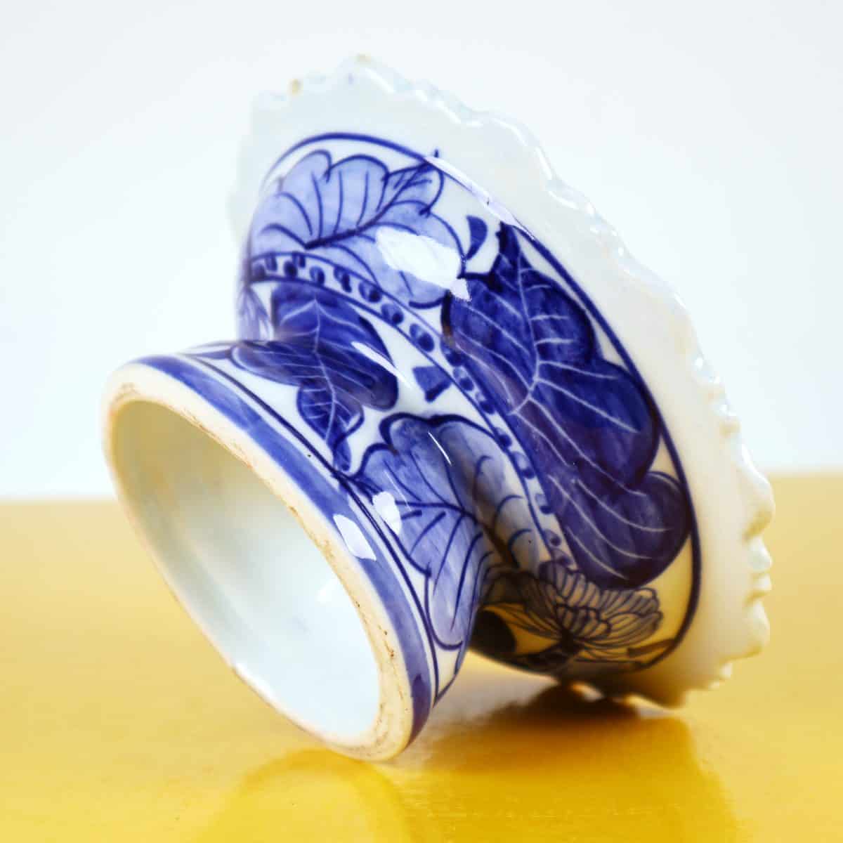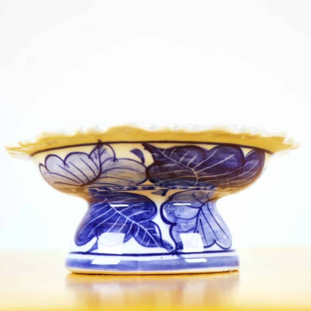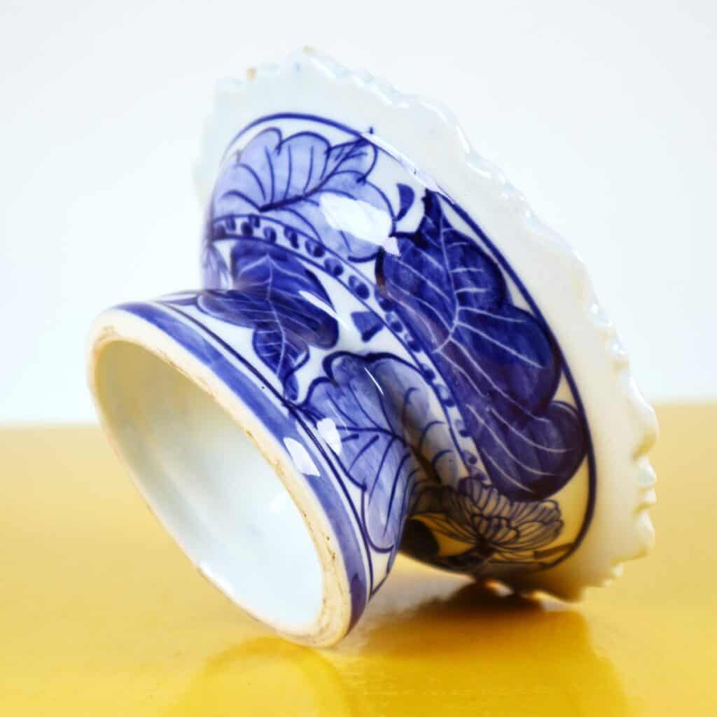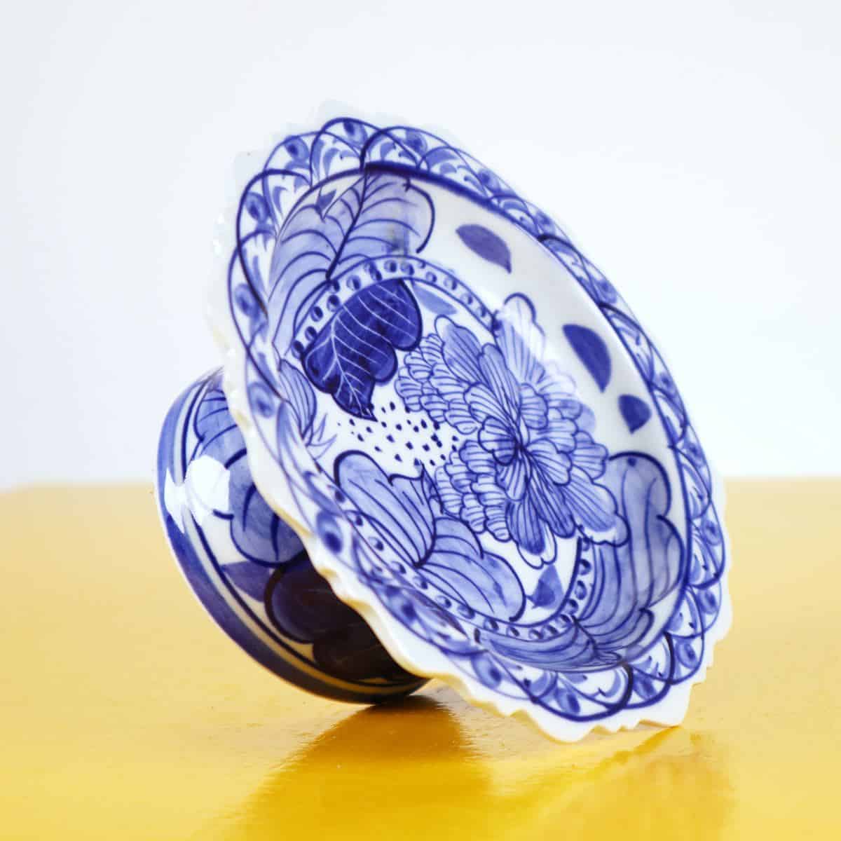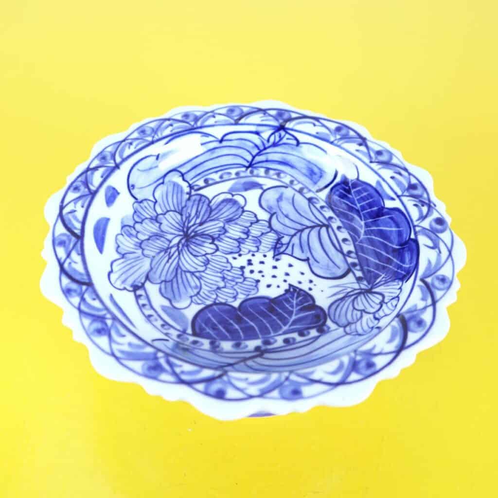 Questa raffinata ciotola in ceramica e' un capolavoro di artigianato, caratterizzata da intrincati motivi floreali blu su sfondo bianco. Ideale per display o come centro tavola, la ciotola presen... Questa raffinata ciotola in ceramica e' un capolavoro di artigianato, caratterizzata da intrincati motivi floreali blu su sfondo bianco. Ideale per display o come centro tavola, la ciotola presenta una forma delicata con bordi ondulati e una base robusta. Perfetta per contenere frutta o dolci, non solo e' funzionale ma anche un oggetto d'arredo di grande impatto visivo. La ceramica e' in buone condizioni, mostrando lievi segni di utilizzo che ne attestano la storia. Un'aggiunta chic a qualsiasi collezione di design o decorazione della casa. Altro