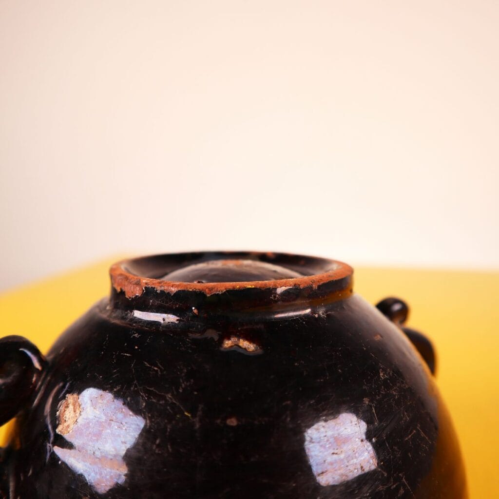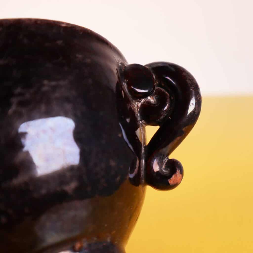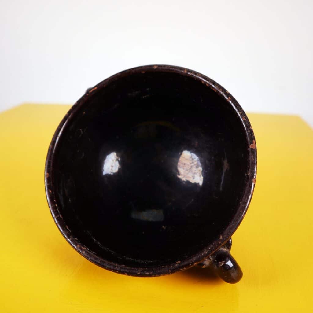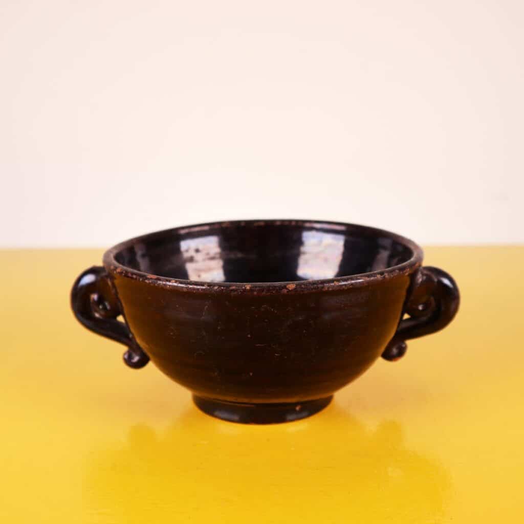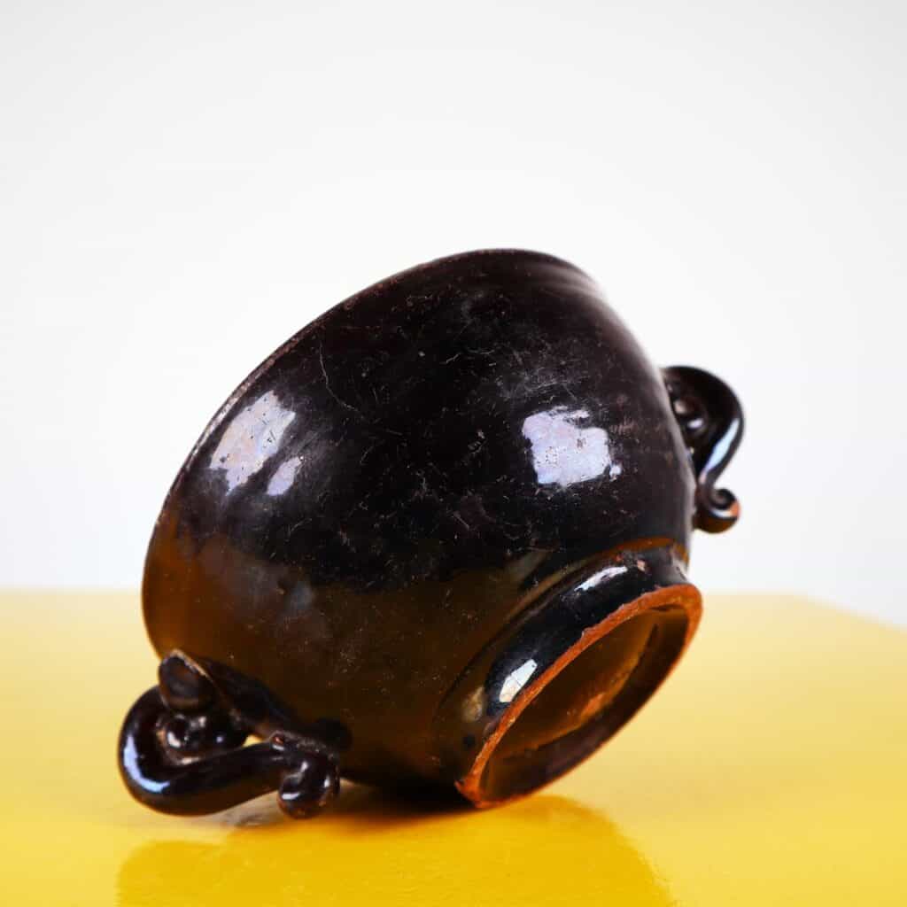Scopri questa affascinante ciotola in TERRACOTTA nera, un pezzo distintivo perfetto per arricchire la tua collezione di oggetti d'arte. Questo accessorio si distingue per le sue eleganti maniglie... Scopri questa affascinante ciotola in TERRACOTTA nera, un pezzo distintivo perfetto per arricchire la tua collezione di oggetti d'arte. Questo accessorio si distingue per le sue eleganti maniglie ricurvate e la finitura lucida, che esaltano il design artigianale di alta qualita'. Risalente a un periodo di produzione ANTICO, possiede una bellezza intramontabile, capace di integrarsi in vari contesti decorativi, dal rustico al moderno. Presenta alcune imperfezioni naturali e lievi segni del tempo, che ne testimoniano l'autenticita' e la storia. Altro