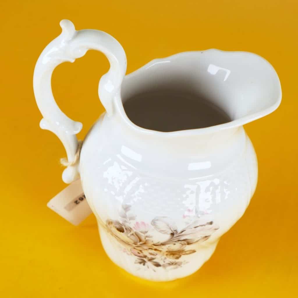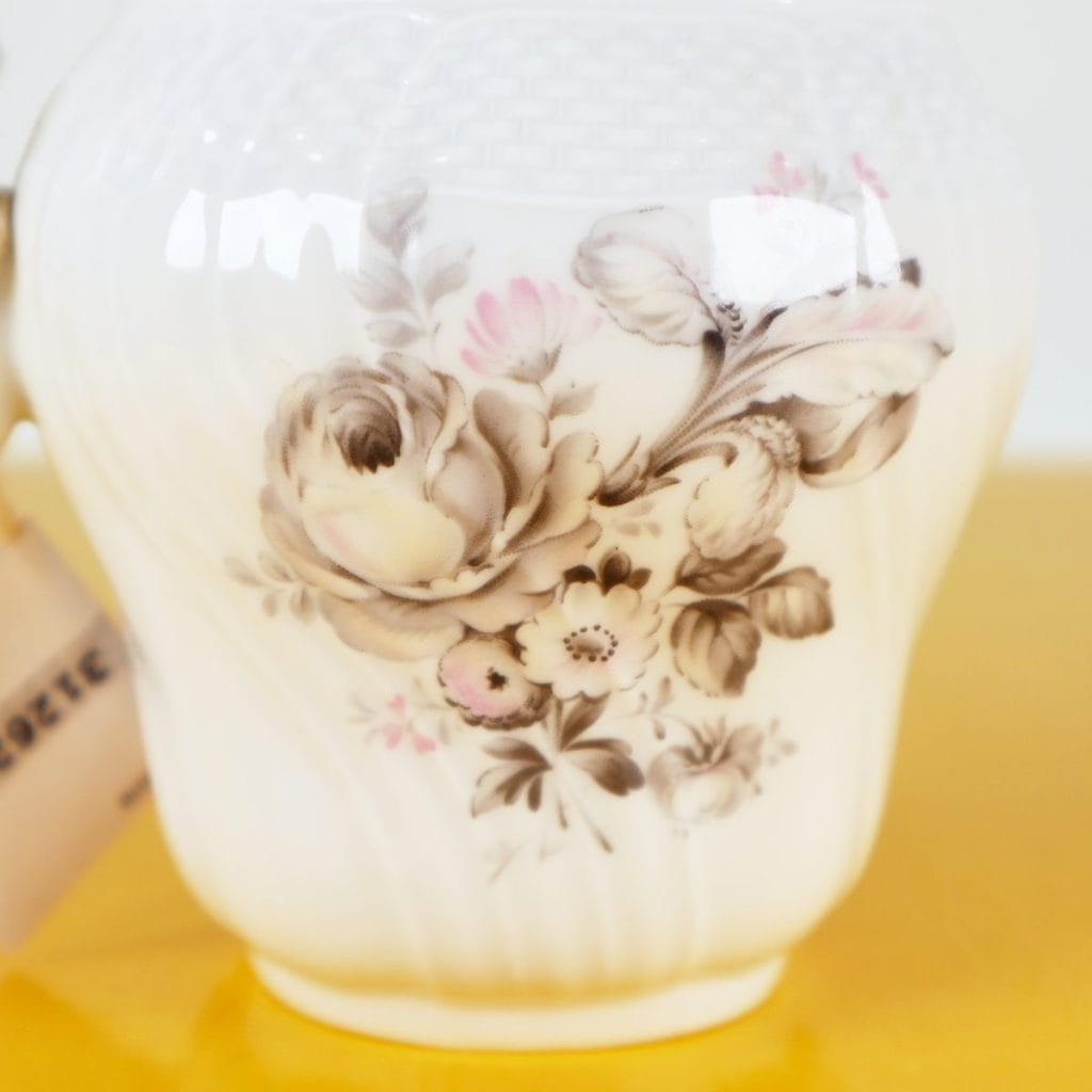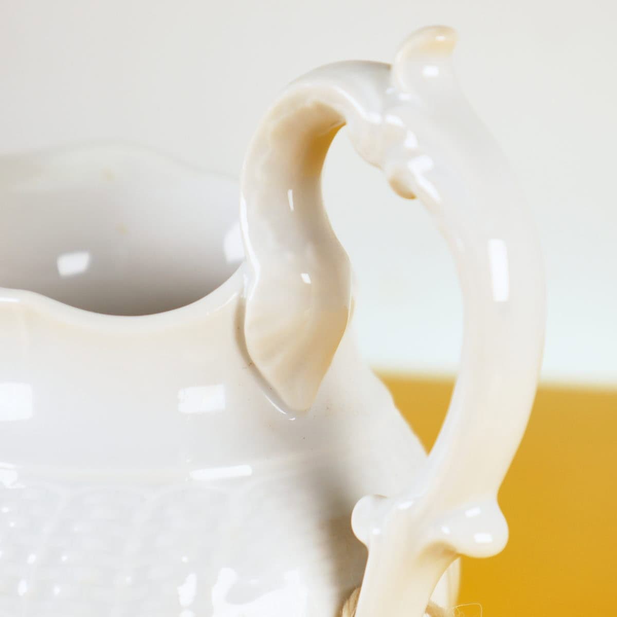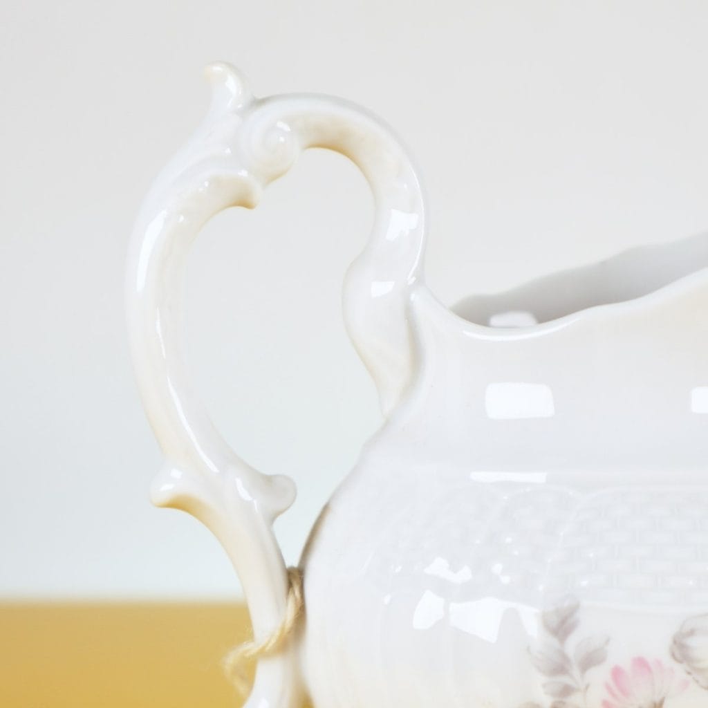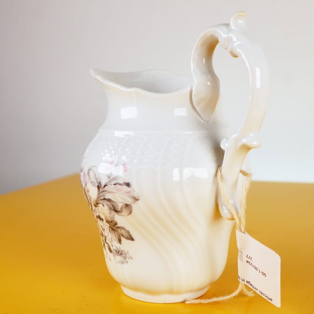 Questa raffinata lattiera Ginori, in deliziosa porcellana bianca, rappresenta un perfetto esempio di artigianato italiano. Decorata con finissimi motivi floreali in tonalita' tenui, e' un pe... Questa raffinata lattiera Ginori, in deliziosa porcellana bianca, rappresenta un perfetto esempio di artigianato italiano. Decorata con finissimi motivi floreali in tonalita' tenui, e' un pezzo intramontabile, ideale per arricchire la tua tavola o come fantastico oggetto da collezione. La sua forma sinuosa, con dettagli delicati sul manico, la rende non solo funzionale ma anche un vero e proprio elemento di design. Adatta per un uso quotidiano o per occasioni speciali, questa lattiera porta con se' il fascino della tradizione italiana, risalente a un'epoca in cui il fine artigianato e il design si fondevano in opere d'arte pratiche. Altro