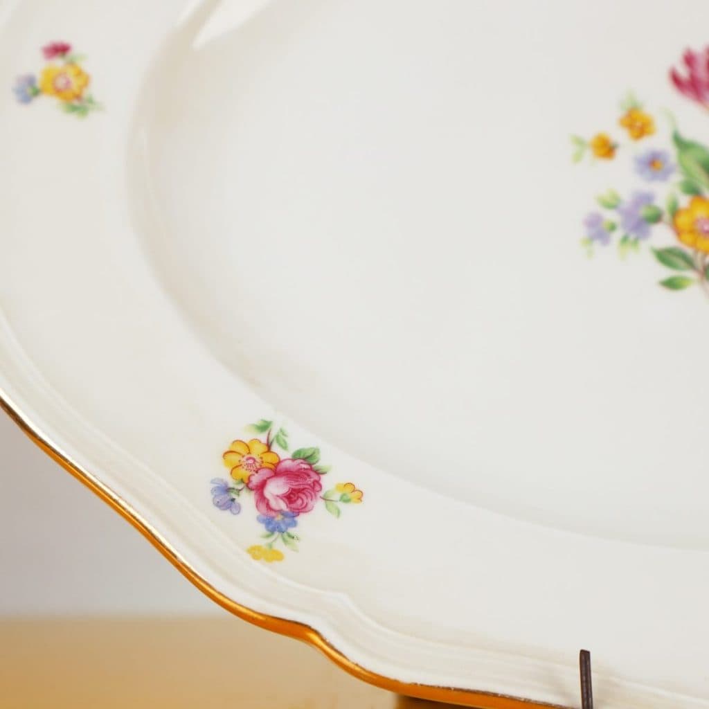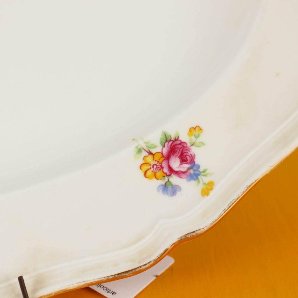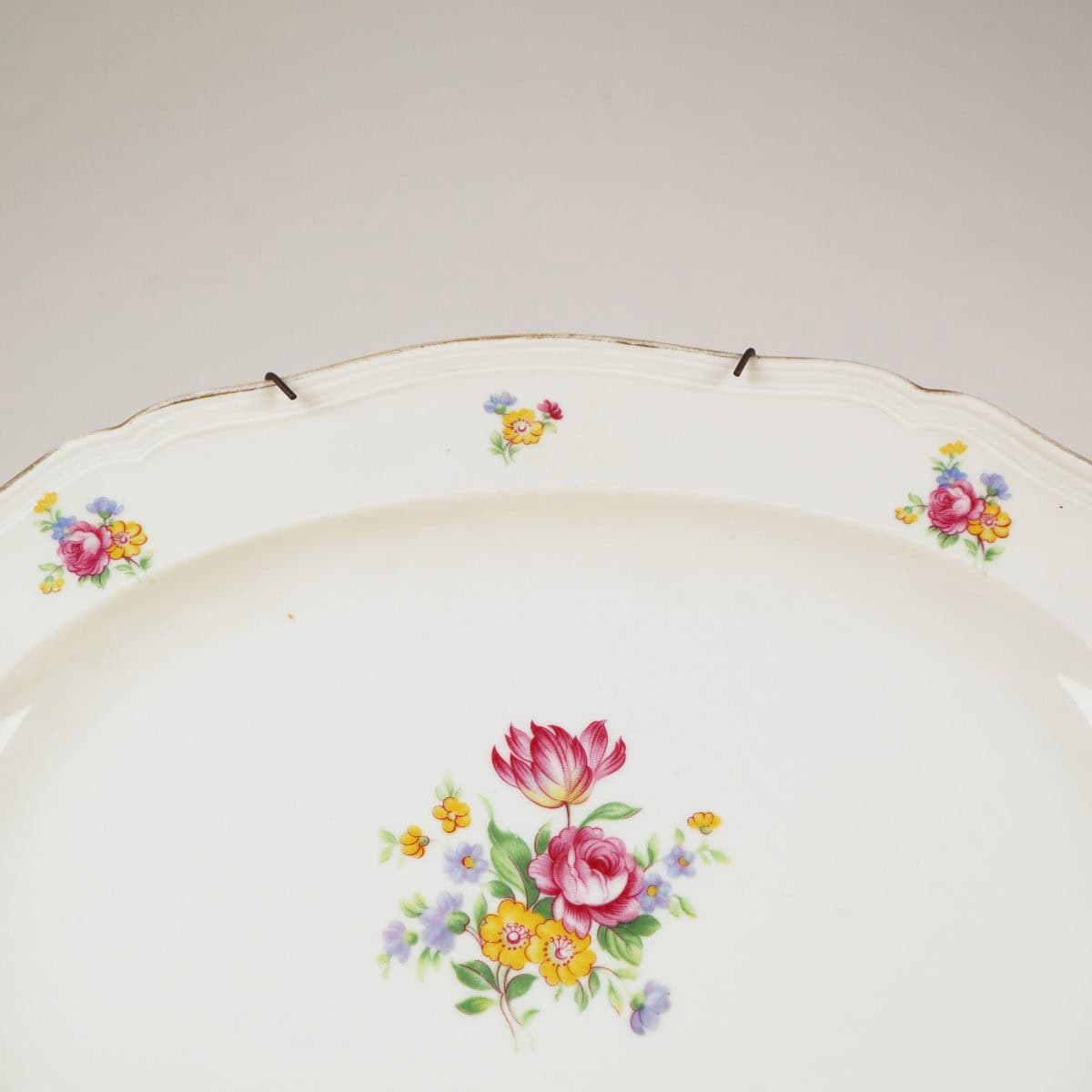 Un raffinato piatto di portata in porcellana del noto marchio Ginori, caratterizzato da una forma ovale e una decorazione floreale vivace. Le tonalita' pastello dei fiori, con eleganti rose e tul... Un raffinato piatto di portata in porcellana del noto marchio Ginori, caratterizzato da una forma ovale e una decorazione floreale vivace. Le tonalita' pastello dei fiori, con eleganti rose e tulipani, impreziosiscono il bianco della ceramica e creano un effetto armonioso e delicato. Il contorno e' elegantemente rifinito con una leggera doratura, che ne sottolinea la ricercatezza. Ottimo per servire piatti di carne o contorni durante cene formali, questo oggetto e' anche ideale come elemento decorativo per vetrine o come pezzo da collezione. In buone condizioni, presenta lievi segni dell'uso nel corso del tempo, che ne attestano la storicita'. Altro
