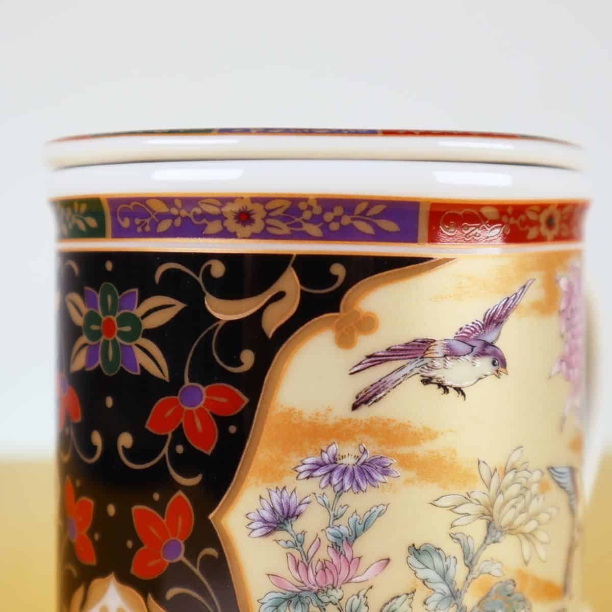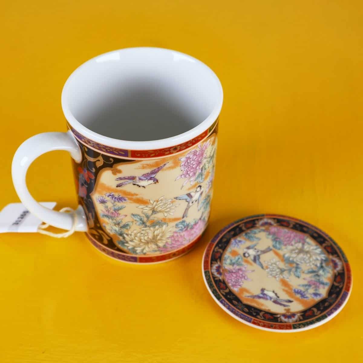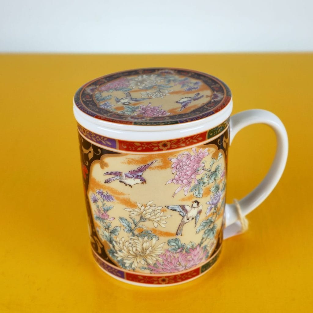 Scopri questa raffinata tazza giapponese in porcellana, caratterizzata da un affascinante design floreale e uccellini, realizzata con una qualita' artigianale impeccabile. La tazza e' accomp... Scopri questa raffinata tazza giapponese in porcellana, caratterizzata da un affascinante design floreale e uccellini, realizzata con una qualita' artigianale impeccabile. La tazza e' accompagnata da un coperchio decorato, che la rende perfetta anche per uso decorativo. Gli ornamenti delicati in tonalita' pastello su uno sfondo beige sono un rimando alla tradizione giapponese, creando un pezzo unico. Questo oggetto, prodotto probabilmente negli anni '70, e' ideale per collezionisti e amanti del design d'epoca, perfetto per serate di te' o come elemento decorativo in casa. Altro