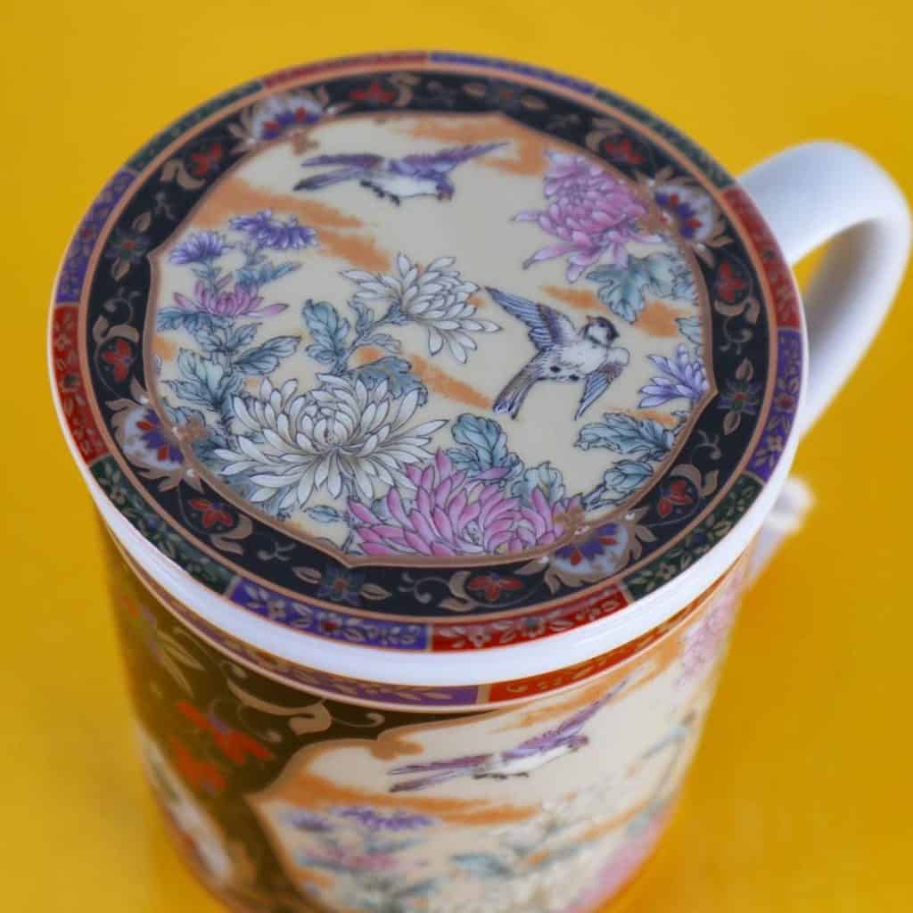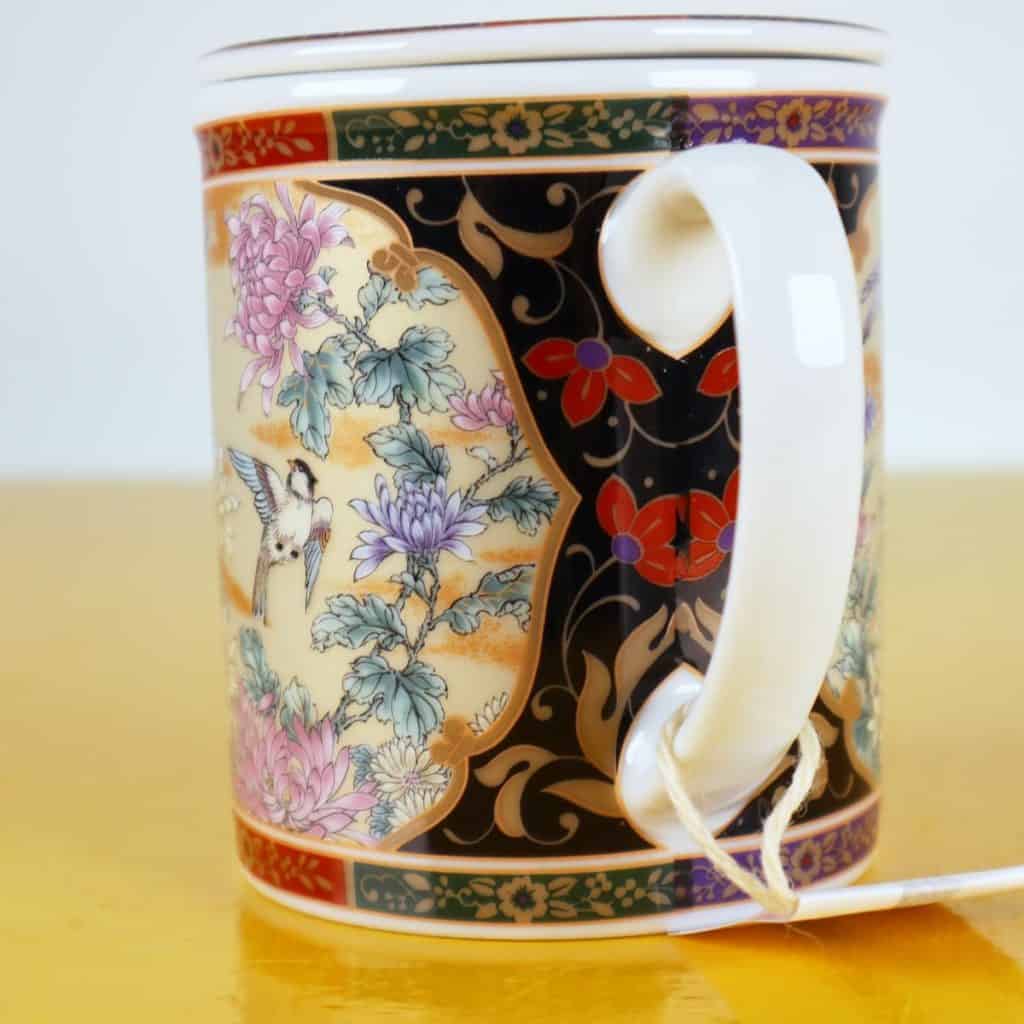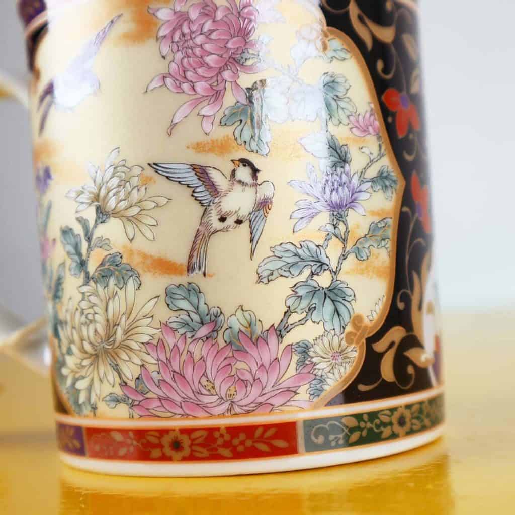 Scopri questa raffinata tazza giapponese in porcellana, caratterizzata da un affascinante design floreale e uccellini, realizzata con una qualita' artigianale impeccabile. La tazza e' accomp... Scopri questa raffinata tazza giapponese in porcellana, caratterizzata da un affascinante design floreale e uccellini, realizzata con una qualita' artigianale impeccabile. La tazza e' accompagnata da un coperchio decorato, che la rende perfetta anche per uso decorativo. Gli ornamenti delicati in tonalita' pastello su uno sfondo beige sono un rimando alla tradizione giapponese, creando un pezzo unico. Questo oggetto, prodotto probabilmente negli anni '70, e' ideale per collezionisti e amanti del design d'epoca, perfetto per serate di te' o come elemento decorativo in casa. Altro
