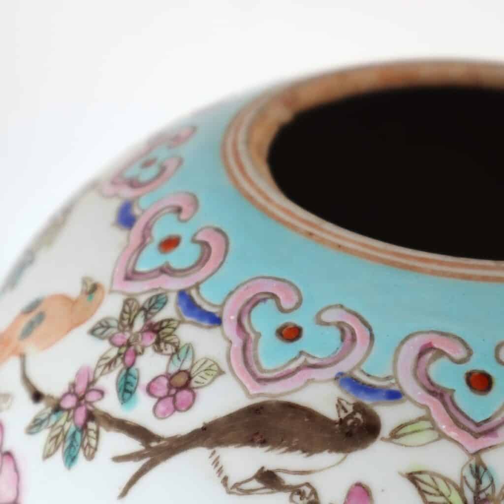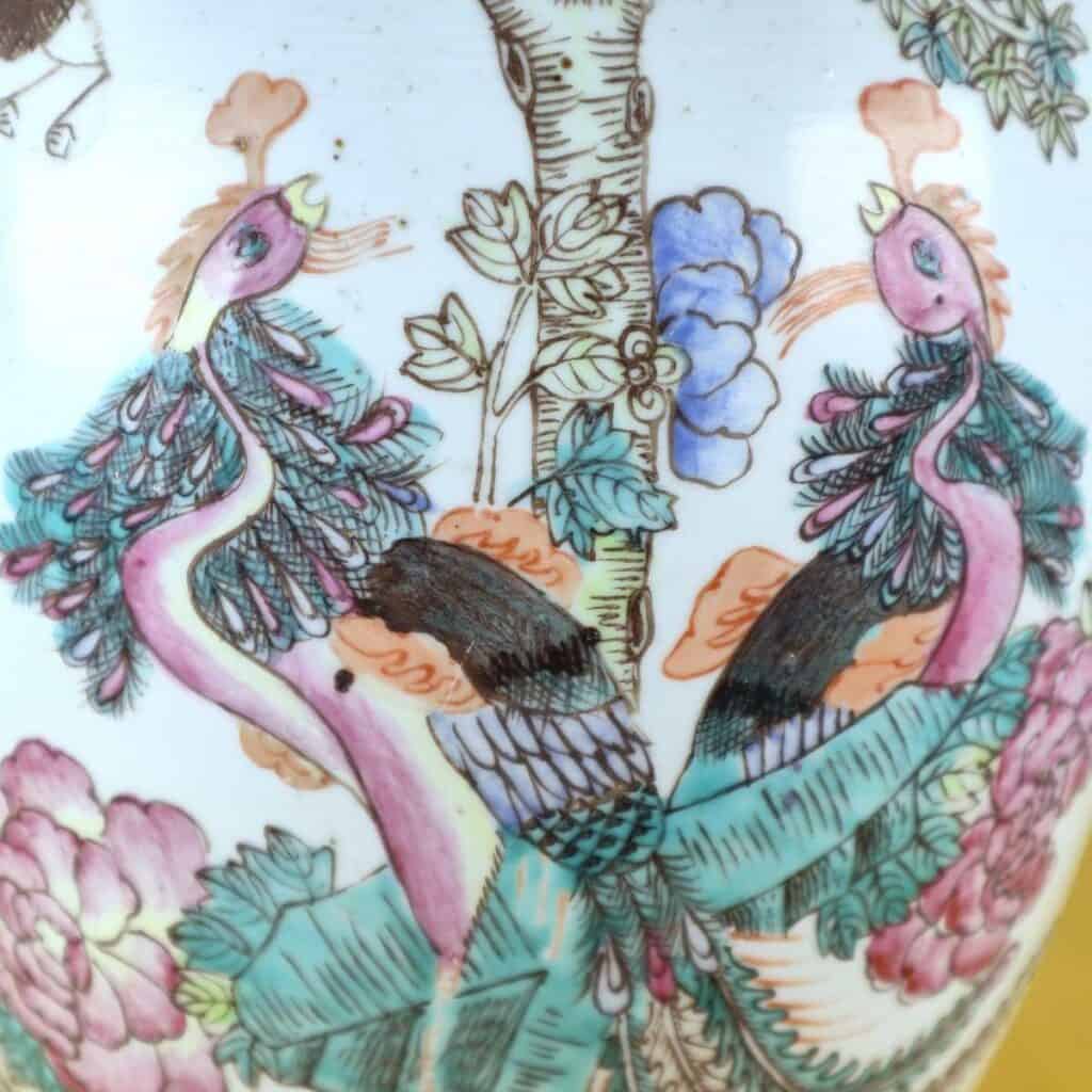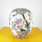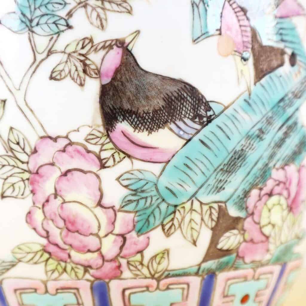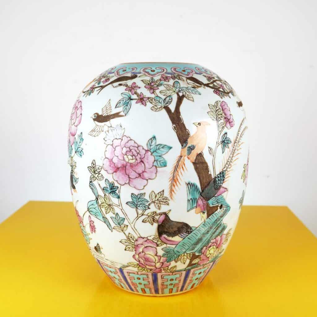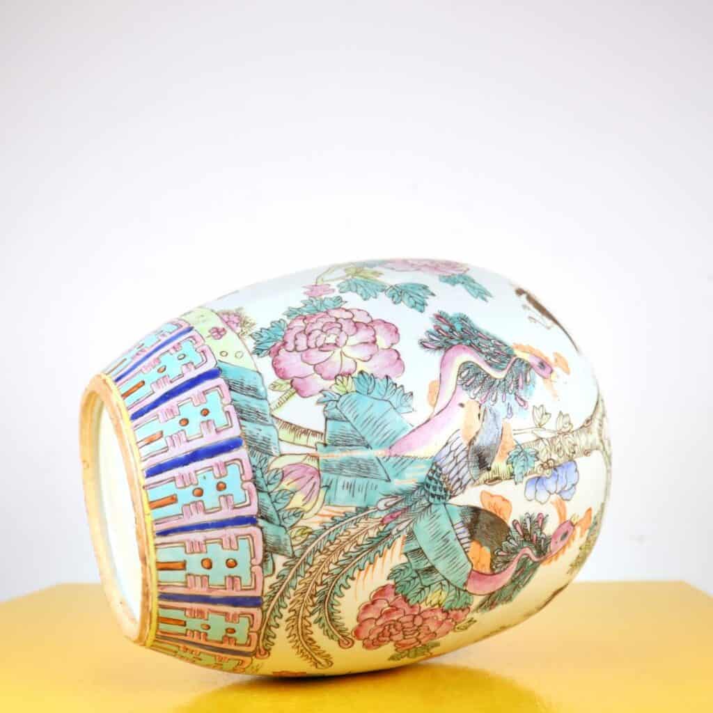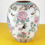 Questo raffinato vaso cinese in porcellana presenta un'incantevole decorazione floreale e faunistica, tipica dello stile Qing. Realizzato con una finissima ceramica, il vaso e' adornato con ... Questo raffinato vaso cinese in porcellana presenta un'incantevole decorazione floreale e faunistica, tipica dello stile Qing. Realizzato con una finissima ceramica, il vaso e' adornato con pennellate vivaci che raffigurano fiori di peonia e uccelli colorati, rendendolo un pezzo d'arte irresistibile. La base e' decorata con motivi geometrici in tonalita' pastello. La forma curvilinea e l'apertura ampia lo rendono adatto sia come vaso da fiori che come oggetto decorativo per eleganti ambienti interni. Presenta lievi segni del tempo, testimoniando la sua storia affascinante e la sua autenticita'. Altro