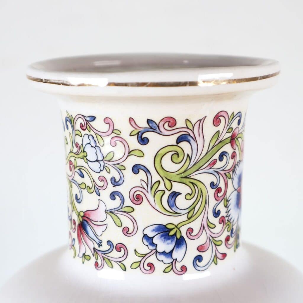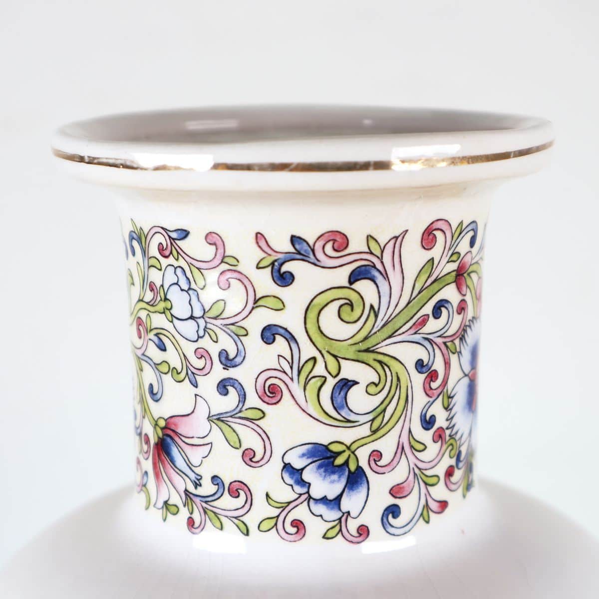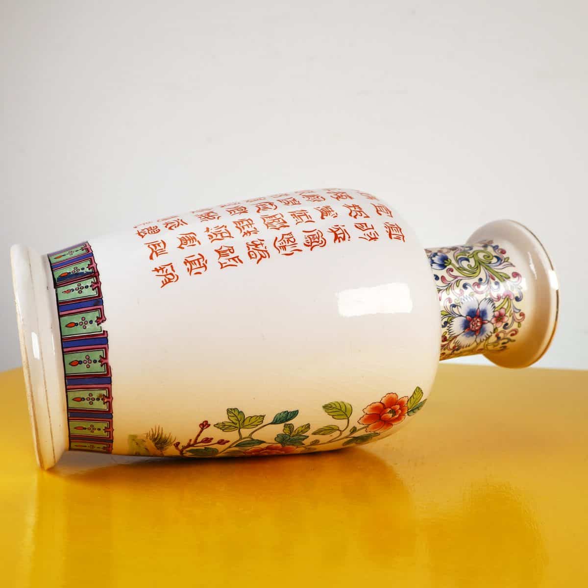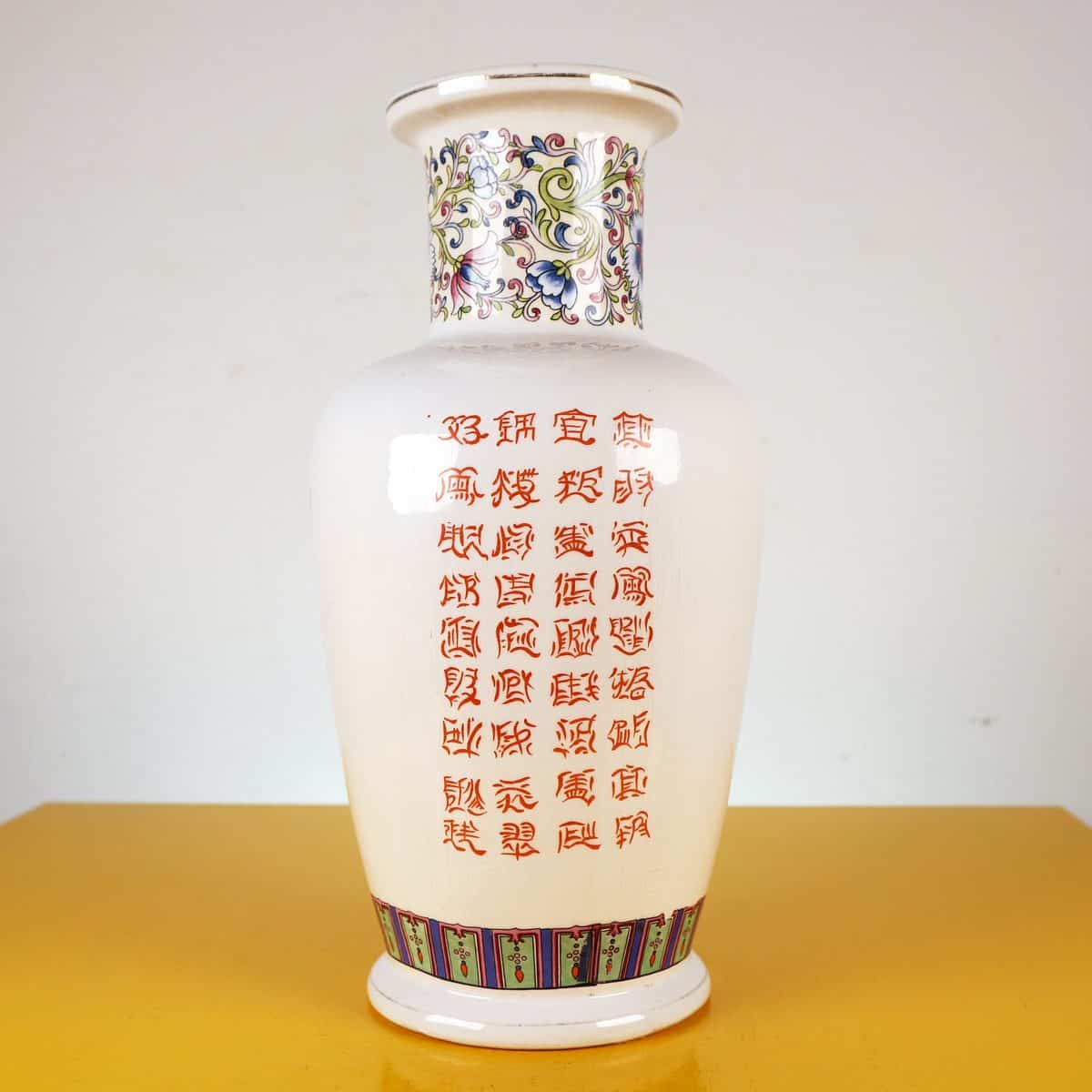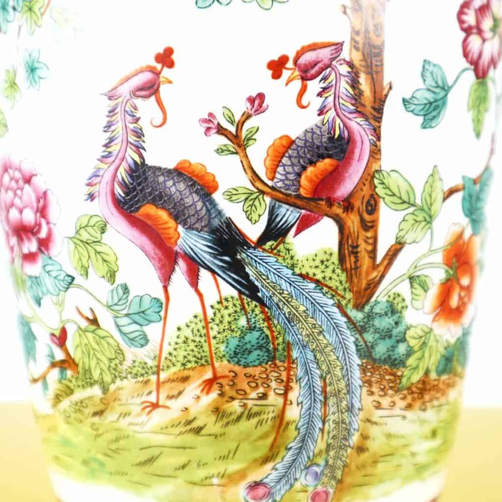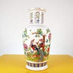 Questo raffinato vaso in porcellana rappresenta un esempio di arte ceramica cinese, caratterizzato da un design ricco e colorato. Decorato con bellissimi pavoni e fiori, il vaso presenta dettagli comp... Questo raffinato vaso in porcellana rappresenta un esempio di arte ceramica cinese, caratterizzato da un design ricco e colorato. Decorato con bellissimi pavoni e fiori, il vaso presenta dettagli complessi e vivaci che esaltano la tradizione artistica orientale. La parte superiore e' ornata con un motivo floreale raffinato e una linea dorata, evidenziando la qualita' della lavorazione. Ideale come oggetto decorativo per salotti o vetrine, questo pezzo porta un tocco di eleganza e storia in ogni ambiente. Le condizioni sono molto buone, e il vaso e' perfetto per collezionisti o per chi desidera abbellire la propria casa con un elemento distintivo. Altro