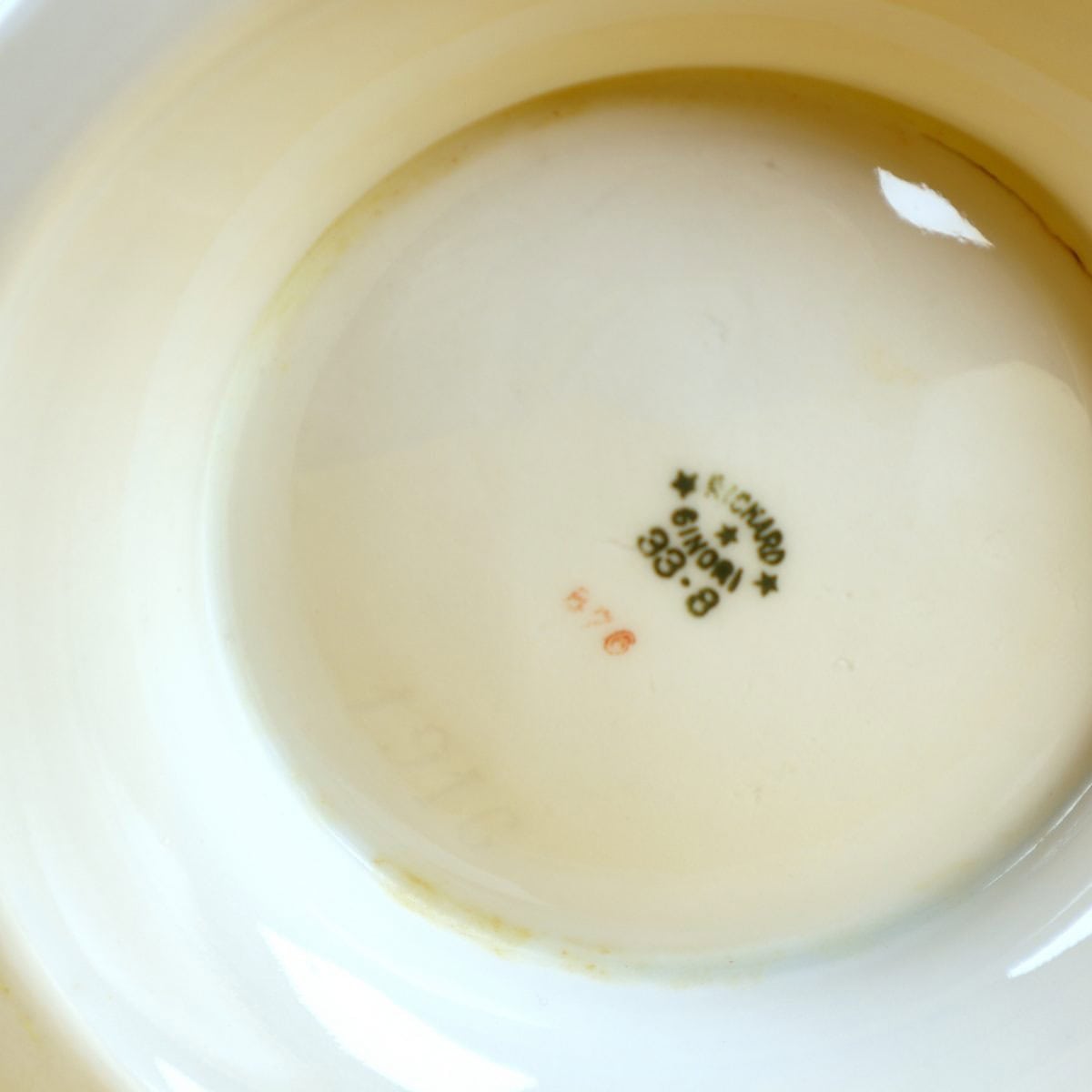Questa raffinata zuppiera in porcellana, realizzata dal prestigioso marchio Ginori, e' un pezzo d'arte che arricchisce qualsiasi tavola. Datata a meta' 20° secolo, presenta delicati mo... Questa raffinata zuppiera in porcellana, realizzata dal prestigioso marchio Ginori, e' un pezzo d'arte che arricchisce qualsiasi tavola. Datata a meta' 20° secolo, presenta delicati motivi floreali nei toni del rosa e del verde che donano un tocco di eleganza. La sua forma classica e' accentuata da un coperchio con un elegante pomello a forma di frutto, arricchito da dettagli scolpiti. Questa zuppiera, ideale per servire zuppe o stufati, e' perfetta anche come elemento decorativo in una vetrina. Nonostante alcuni segni del tempo, la sua bellezza rimane intatta, rendendola un'opzione ideale per collezionisti o come regalo speciale. Altro