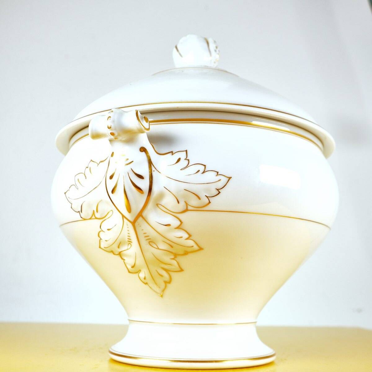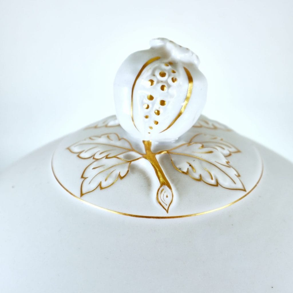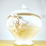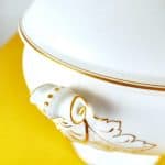 Scopri l'eleganza senza tempo di questa preziosa zuppiera in porcellana, autenticamente firmata Ginori. Caratterizzata da una finissima lavorazione in bianco setoso e dettagli dorati, e' orn... Scopri l'eleganza senza tempo di questa preziosa zuppiera in porcellana, autenticamente firmata Ginori. Caratterizzata da una finissima lavorazione in bianco setoso e dettagli dorati, e' ornata da delicati motivi floreali sul corpo e sul coperchio, evidenziando la maestria artigianale. Questo pezzo versatile, perfetto per presentare zuppe, stufati o piatti freddi, puo' essere un'aggiunta regale alla tua tavola o un elegante elemento decorativo in vetrina. La zuppiera e' in condizioni molto buone, con lievi segni d'uso, testimoni della sua storia. Un autentico tesoro per collezionisti e appassionati di design. Altro