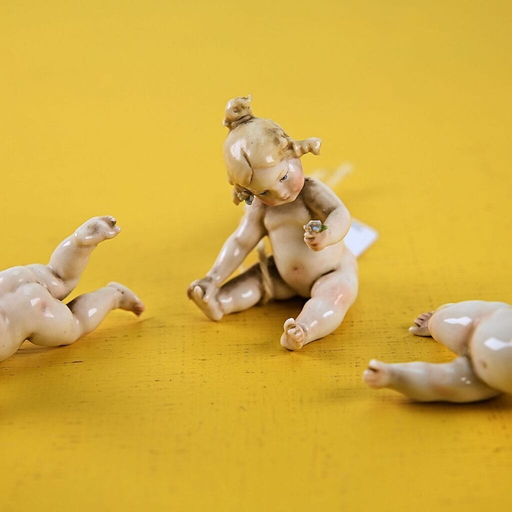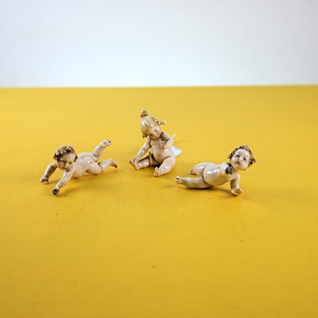 statuine ceramica giuseppe cappe 1959 bambini con fiori, 3 pezzi