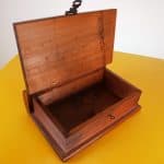 Questa raffinata scatola in legno massello è un pezzo di design d"epoca, perfetta per conservare piccoli oggetti o gioielli. Realizzata con legno di alta qualità, presenta una finitura calda e natural... Questa raffinata scatola in legno massello è un pezzo di design d"epoca, perfetta per conservare piccoli oggetti o gioielli. Realizzata con legno di alta qualità, presenta una finitura calda e naturale che mette in risalto le venature del legno. Dotata di un elegante meccanismo di chiusura in metallo, la scatola si distingue per il suo design sobrio e funzionale, rendendola adatta a qualsiasi ambiente, dall"ufficio alla camera da letto. Le dimensioni compatte la rendono versatile e pratica da utilizzare. Perfetta per chi ama l"artigianato e il design vintage, questa scatola è in buone condizioni, con solo lievi segni del tempo, che ne evidenziano il carattere storico. Altro