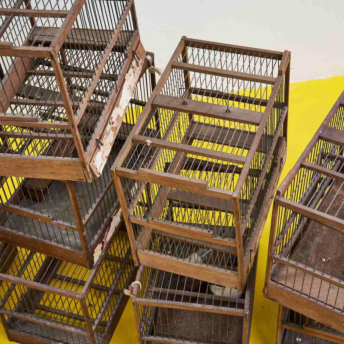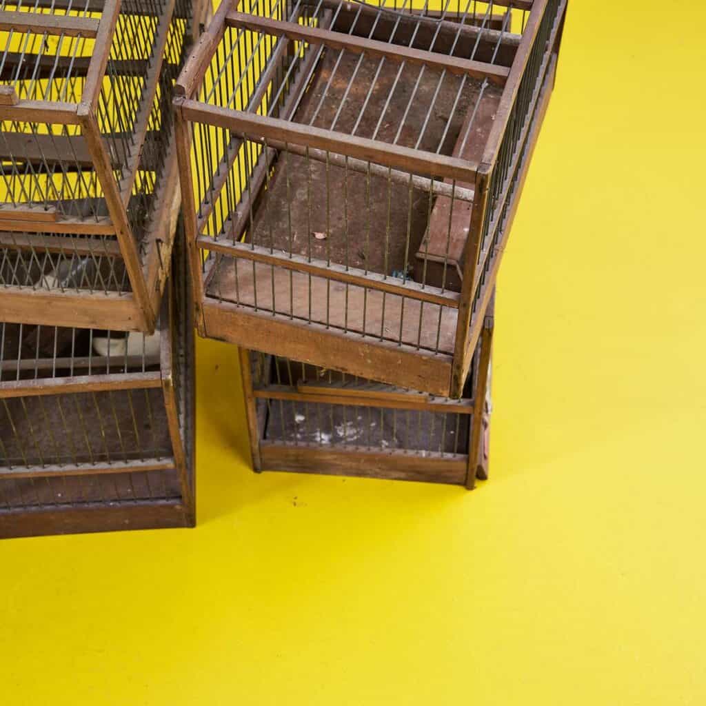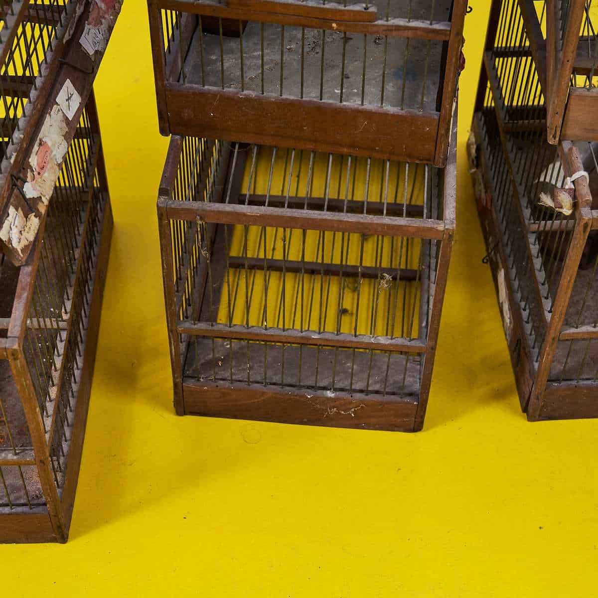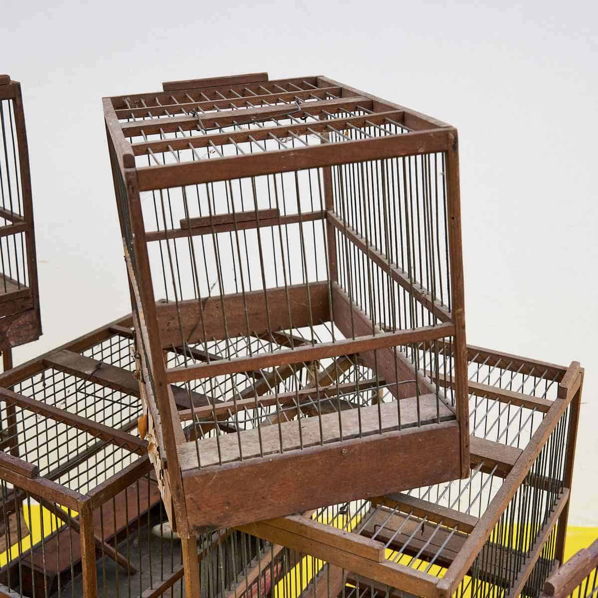 Lotto di Gabbie per uccellini in legno vintage 10 pz