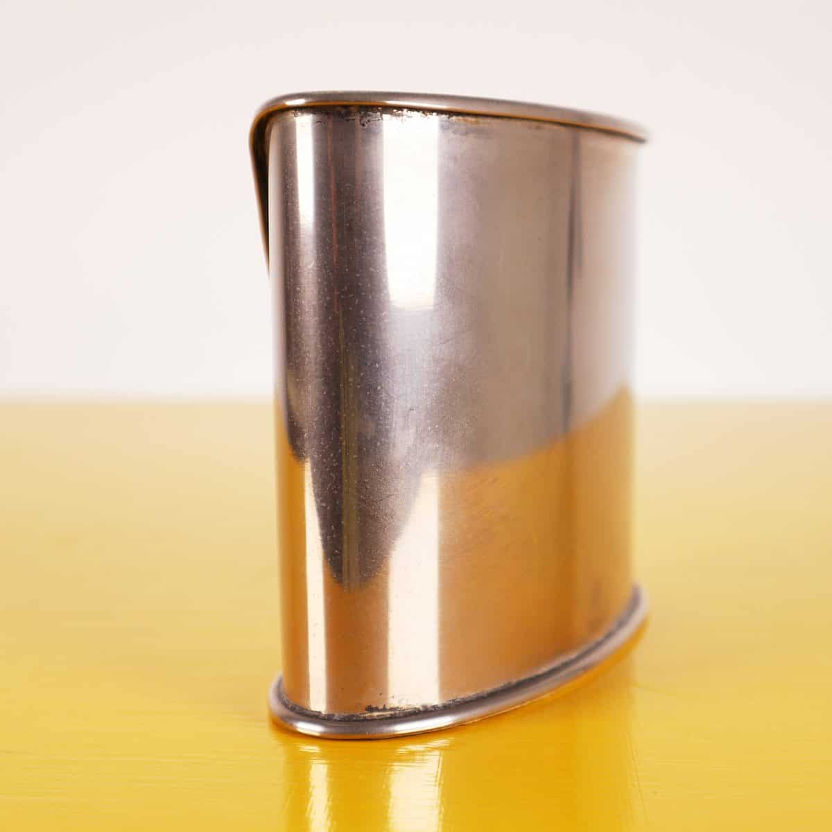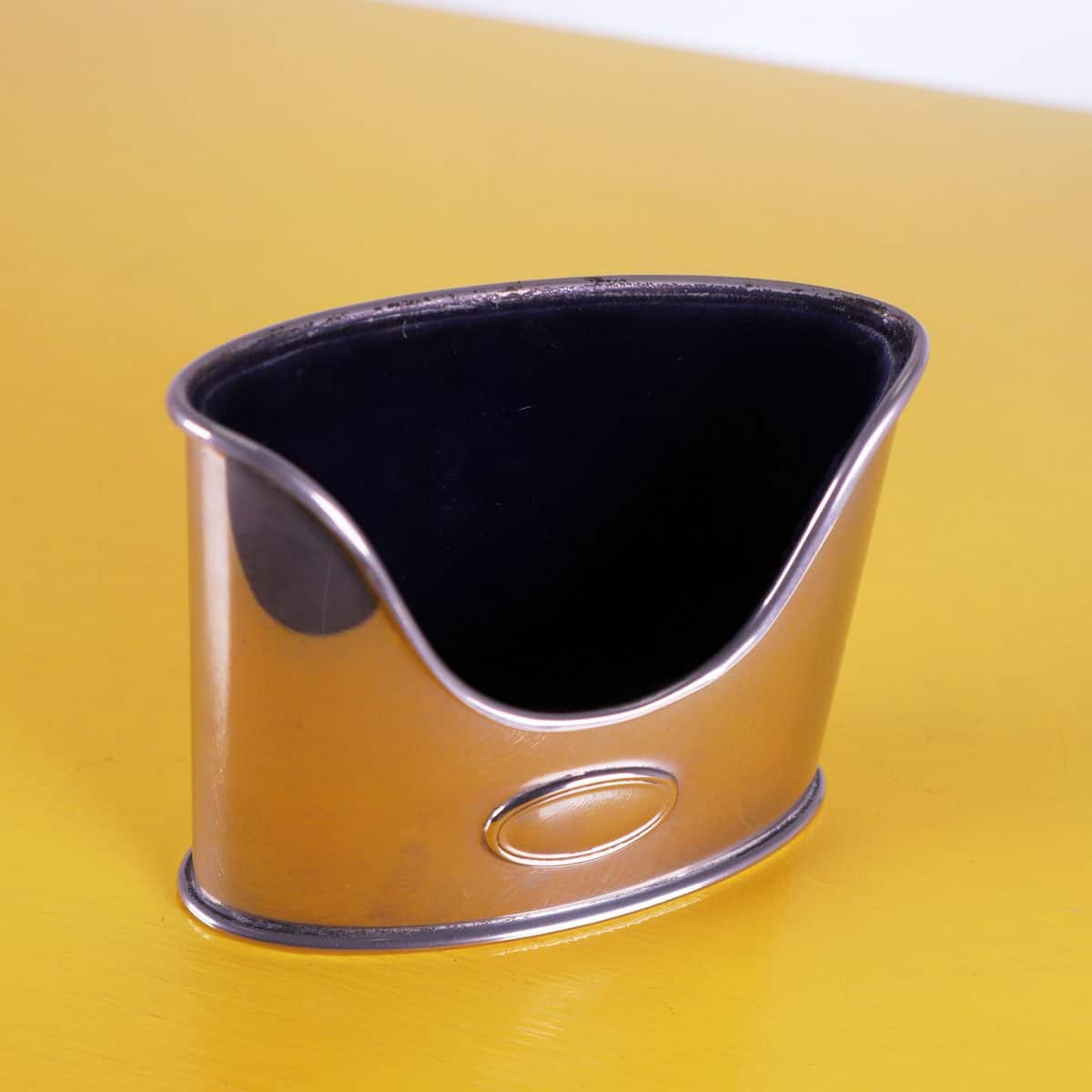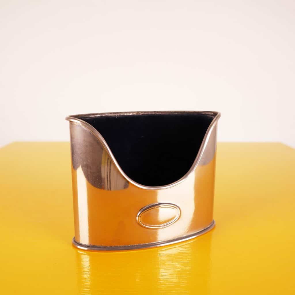Scopri questo affascinante portapenne in argento placcato, un accessorio di design perfetto per qualsiasi studio o scrivania moderna. Realizzato con una finitura lucida e un elegante profilo curvo, qu... Altro