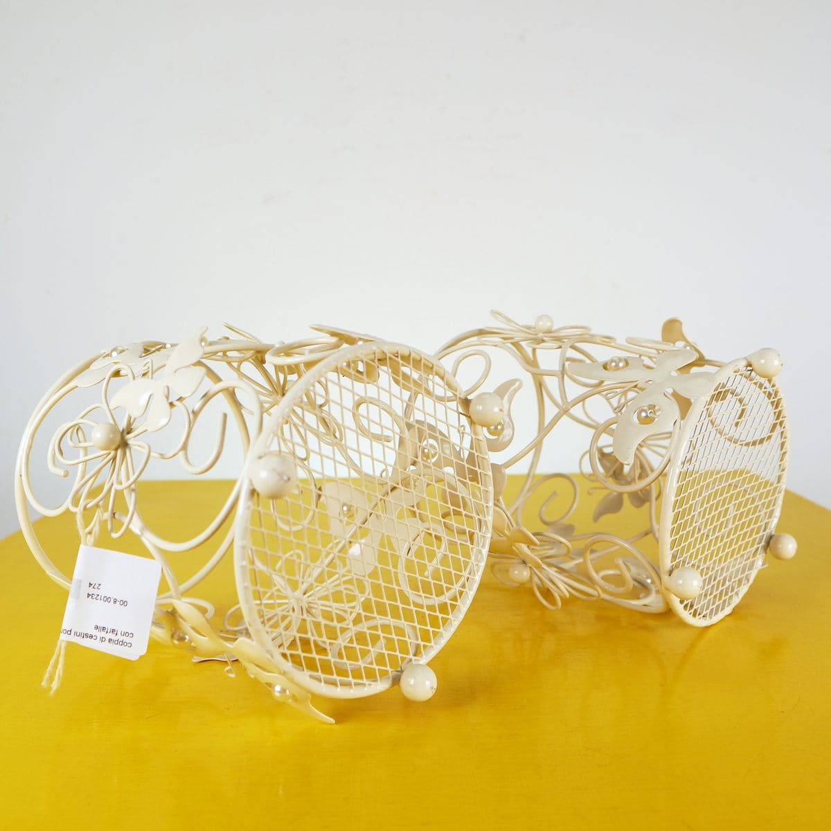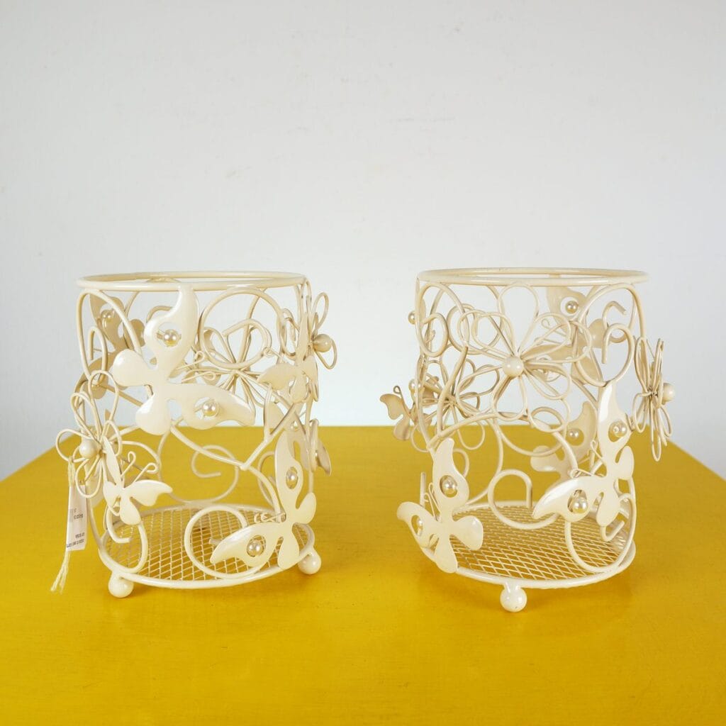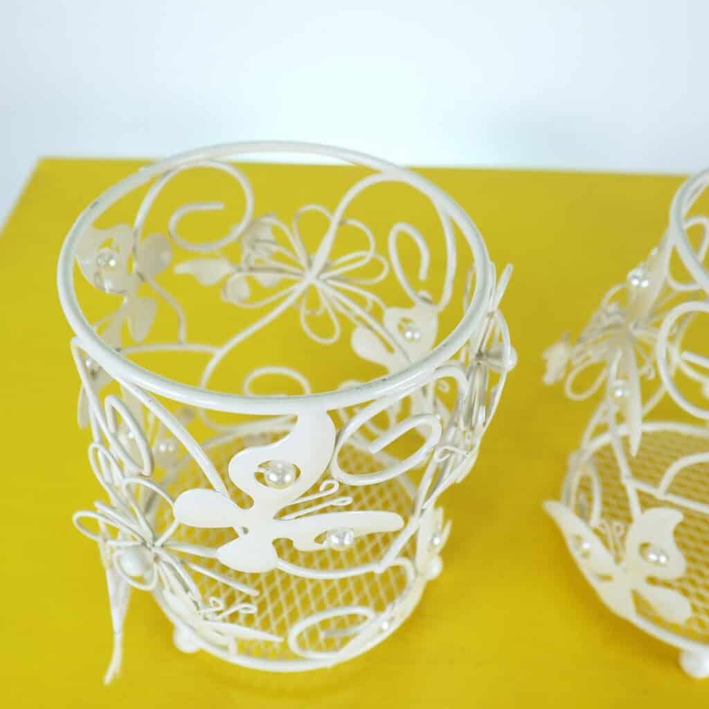 coppia di cestini porta grissini in metallo con farfalle