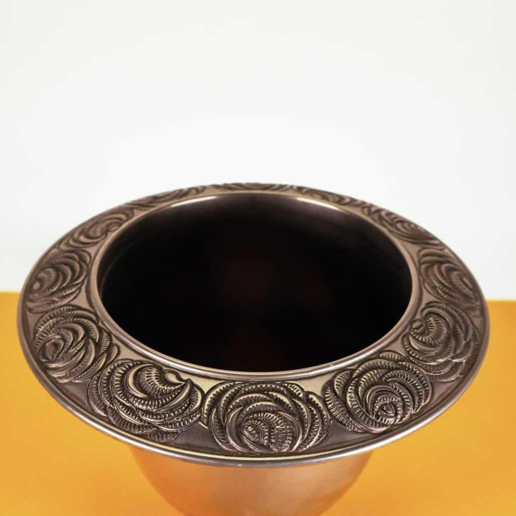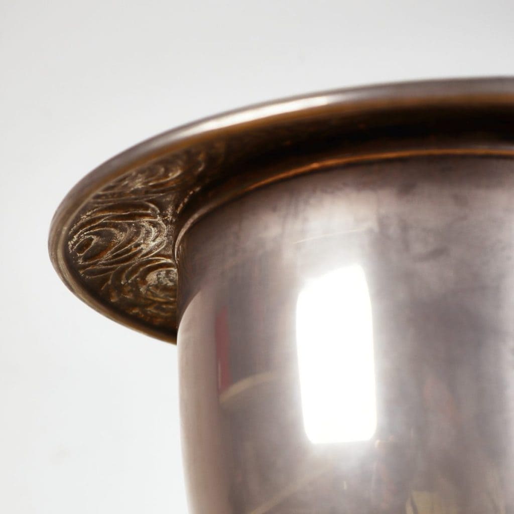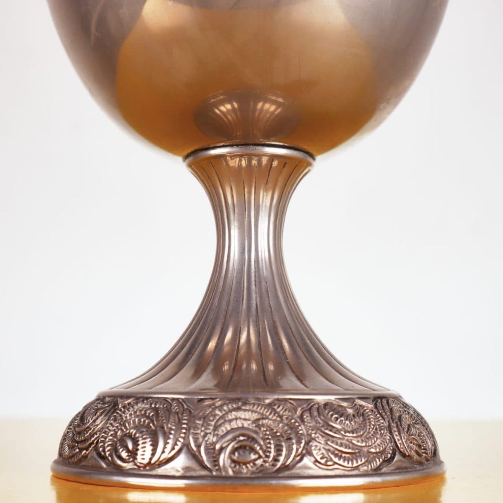 grande vaso coppa in metallo con base decorata