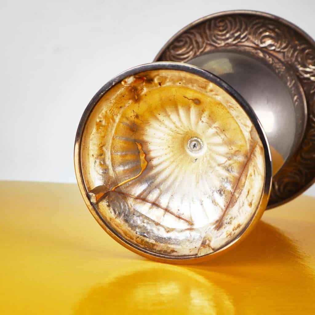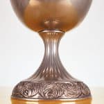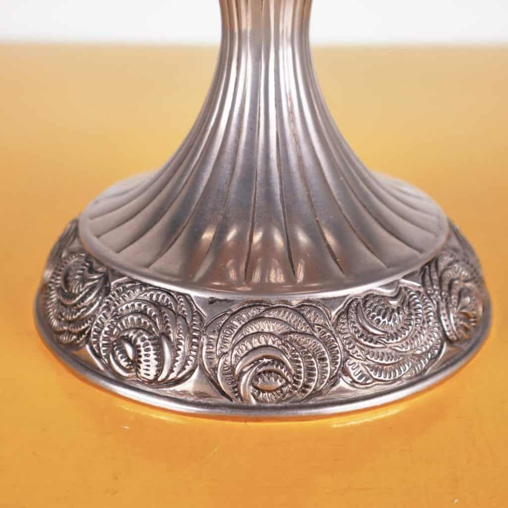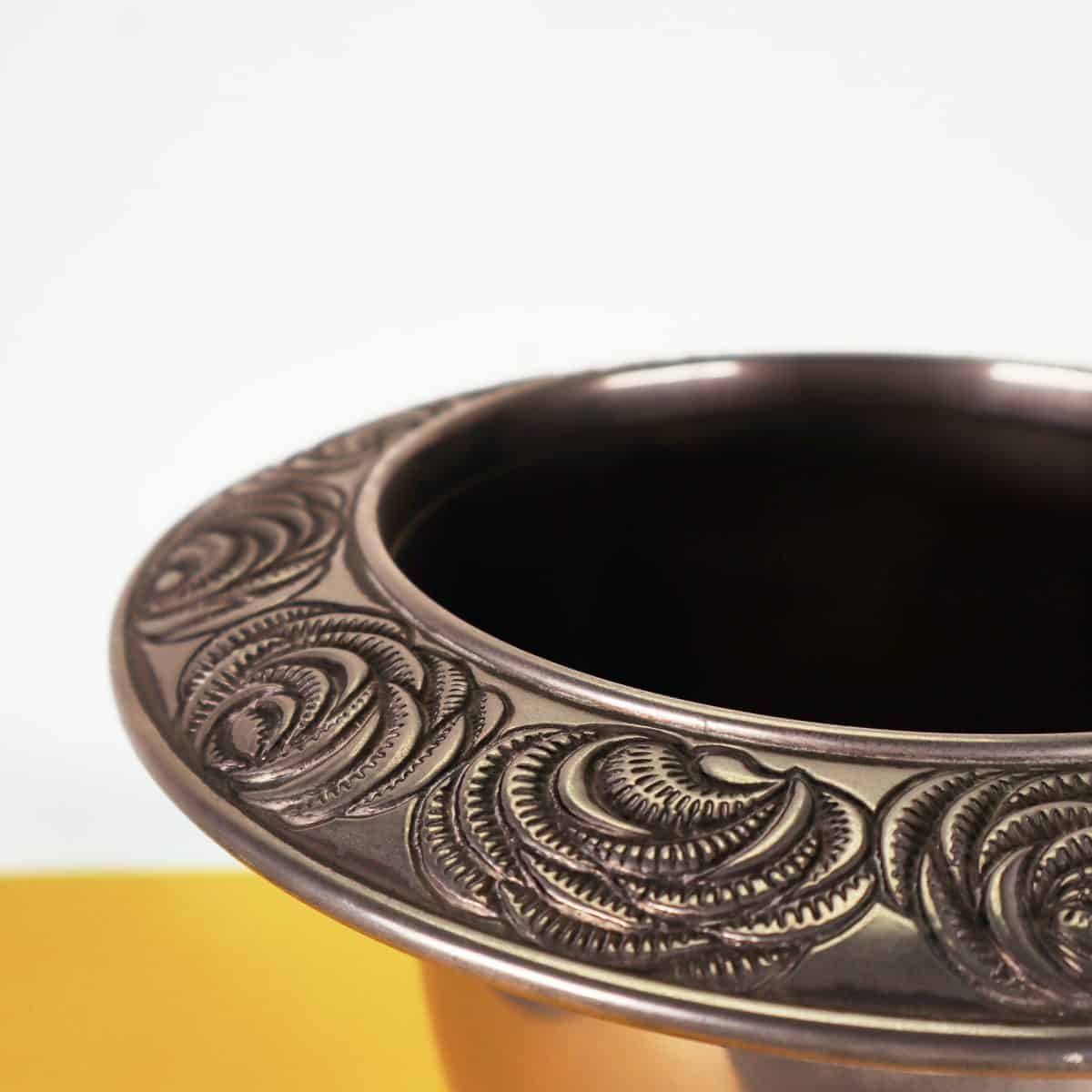 grande vaso coppa in metallo con base decorata