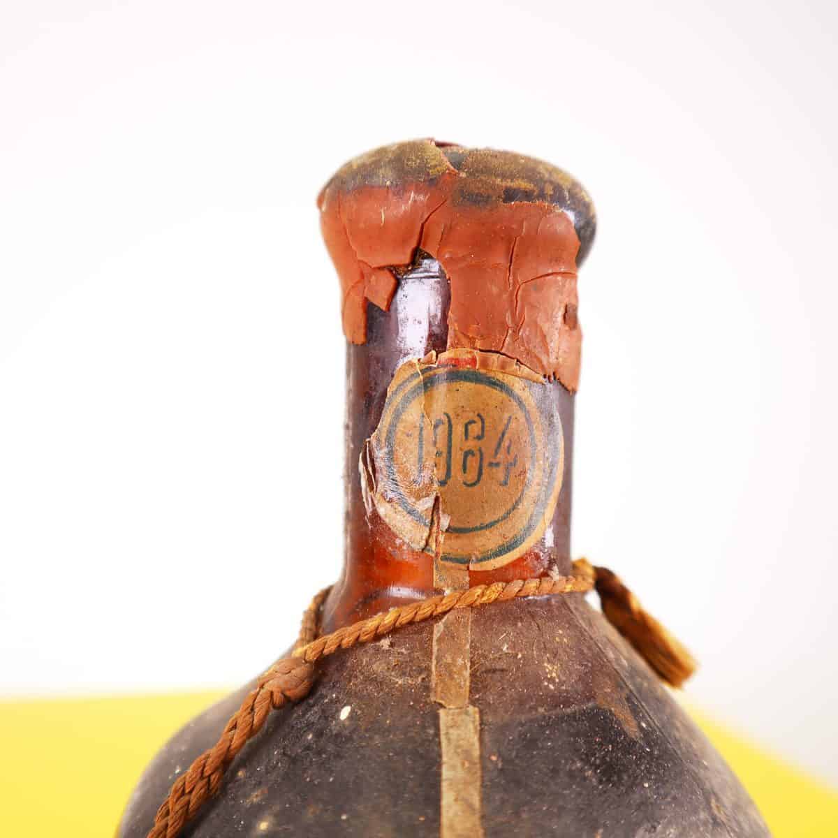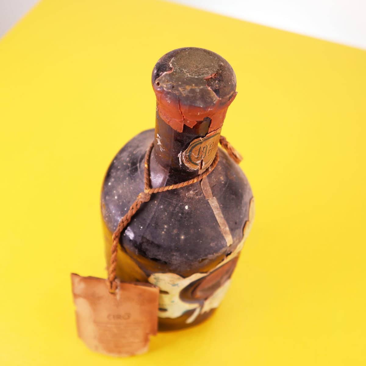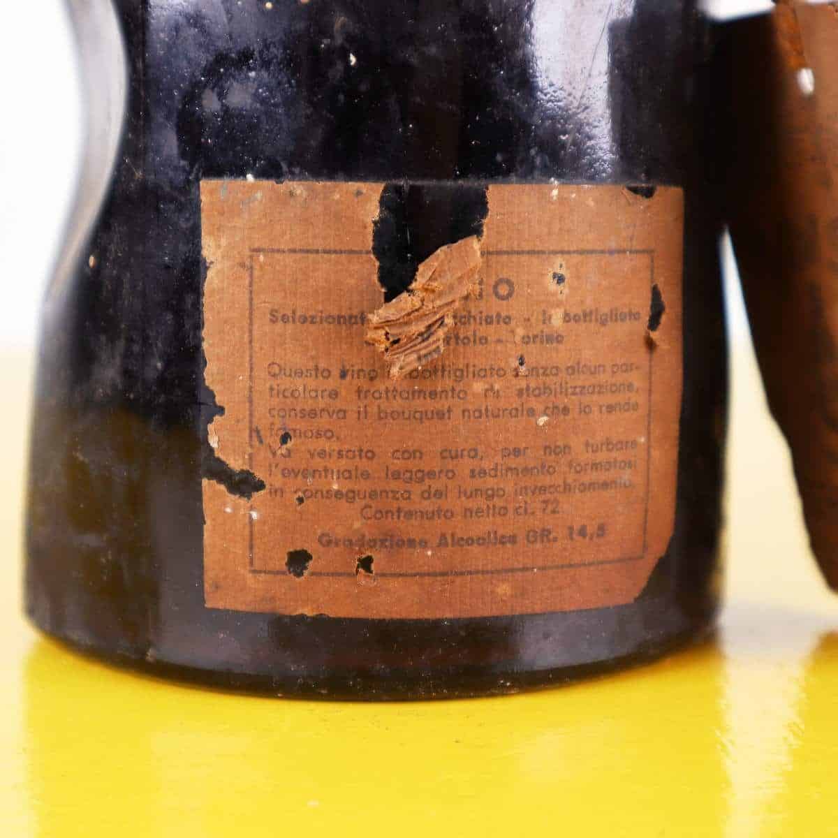 Scopri questa affascinante bottiglia di vino Ciro', risalente al 1964, che rappresenta un pezzo di storia della viticoltura italiana. La bottiglia, realizzata in vetro scuro, presenta etichette v... Scopri questa affascinante bottiglia di vino Ciro', risalente al 1964, che rappresenta un pezzo di storia della viticoltura italiana. La bottiglia, realizzata in vetro scuro, presenta etichette vintage con decorazioni di foglie che ne esaltano il fascino. L'aspetto usurato attesta il tempo trascorso, conferendole un'autenticita' ineguagliabile. Ideale come elemento decorativo per una cantina o un ristorante che desidera esprimere un amore per il vintage, questa bottiglia racconta storie di vigne e tradizioni. La sua presenza in uno spazio dona carattere e un tocco di nostalgia, perfetta per collezionisti e appassionati di antiquariato. Altro