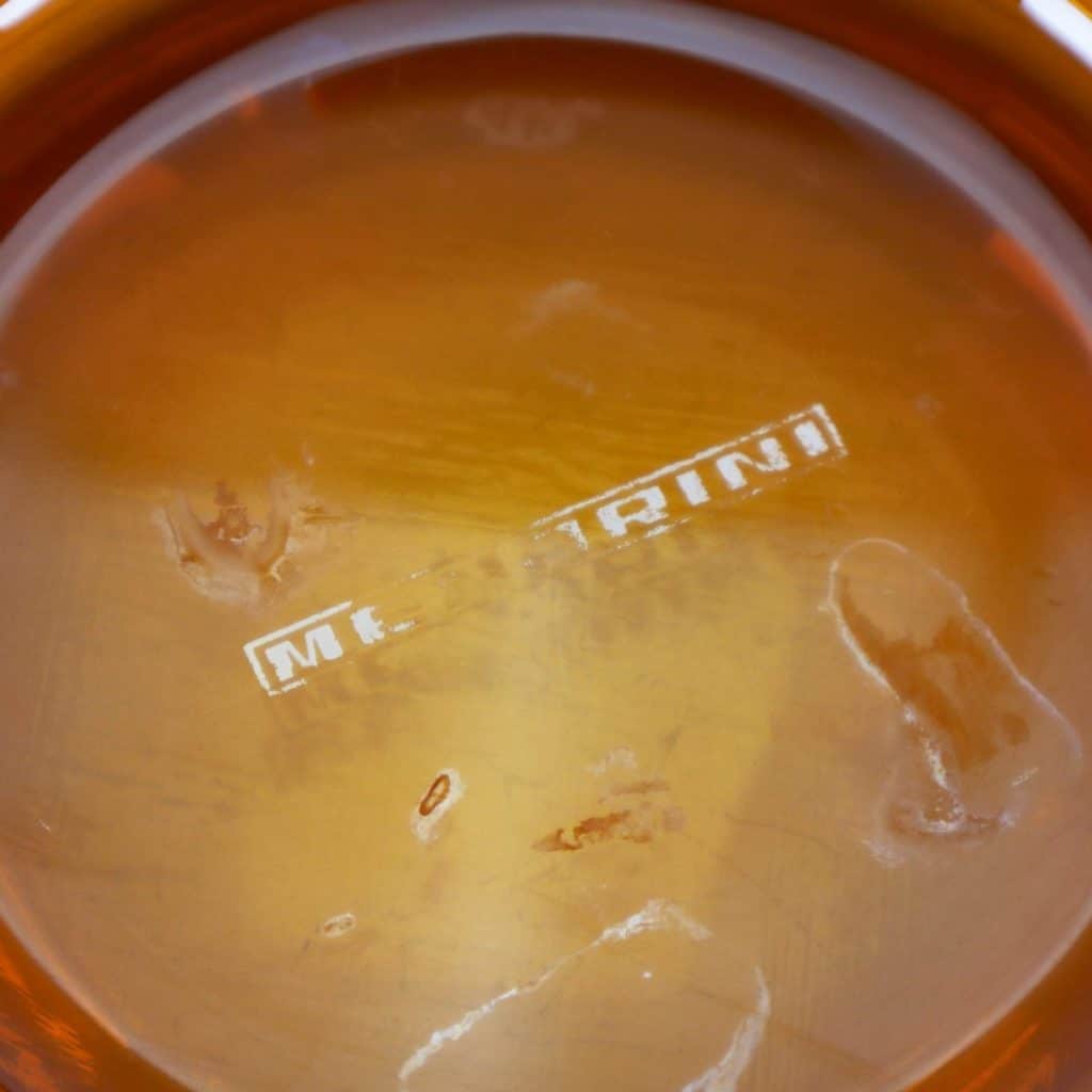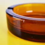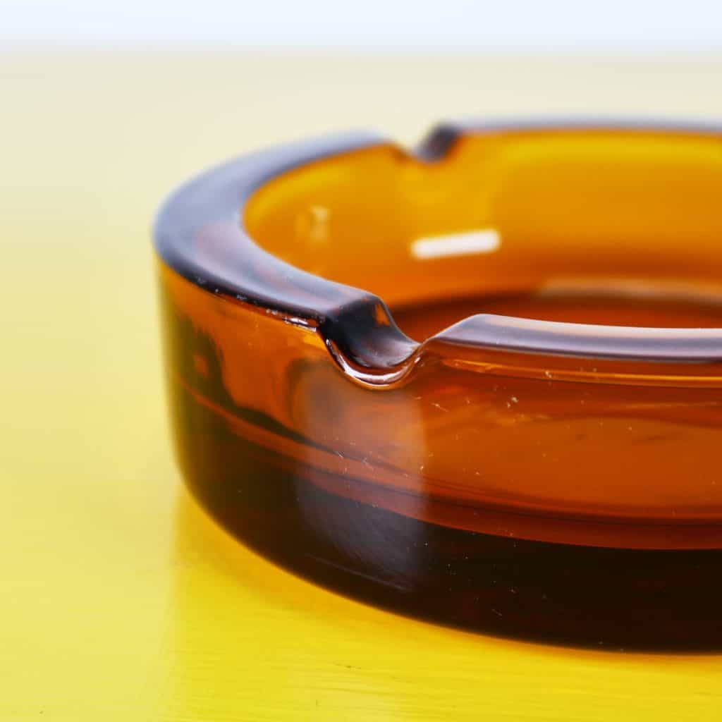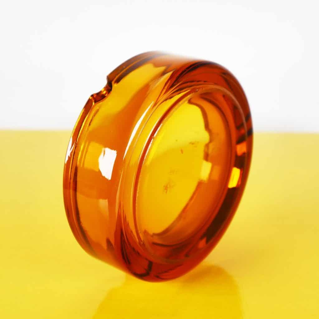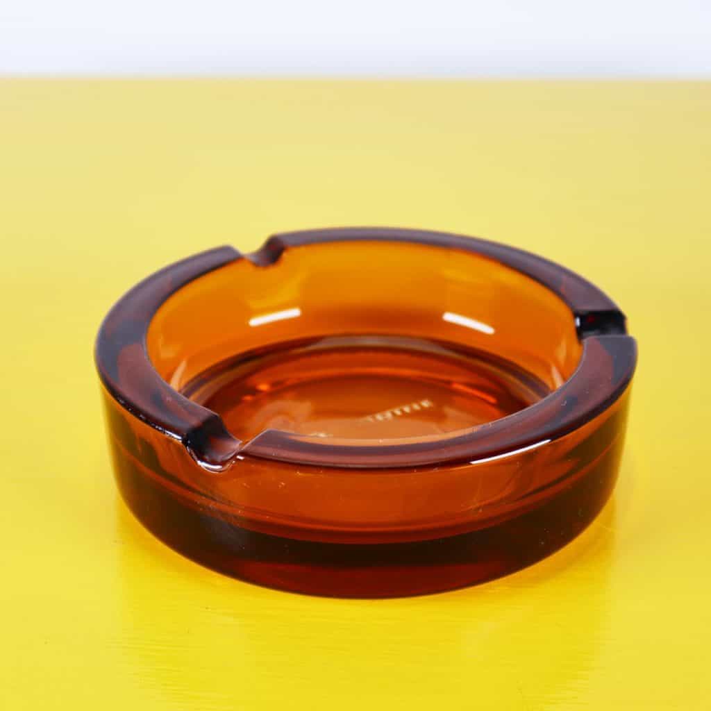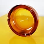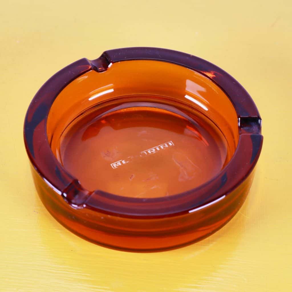 Questo affascinante posacenere in vetro, prodotto da Menarini, e' un autentico pezzo di design degli anni '60. La sua forma arrotondata e il caratteristico colore ambrato lo rendono un ogget... Questo affascinante posacenere in vetro, prodotto da Menarini, e' un autentico pezzo di design degli anni '60. La sua forma arrotondata e il caratteristico colore ambrato lo rendono un oggetto decorativo di grande effetto. Realizzato in vetro della migliore qualita', presenta una superficie liscia e lucida con dettagli raffinati. Le due aperture laterali permettono una comoda posizione delle sigarette. Ottimo per l'uso domestico o come pezzo da collezione, e' adatto per chi ama il vintage e l'eleganza nel design. I segni del tempo ne testimoniano la storia, rendendolo unico e prezioso. Altro
