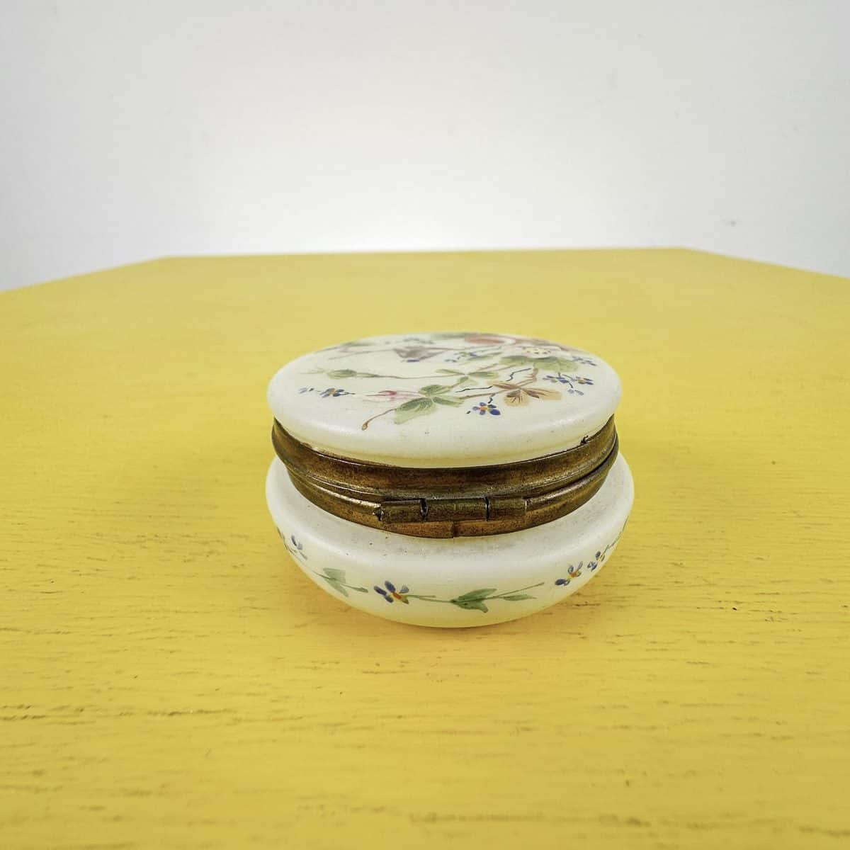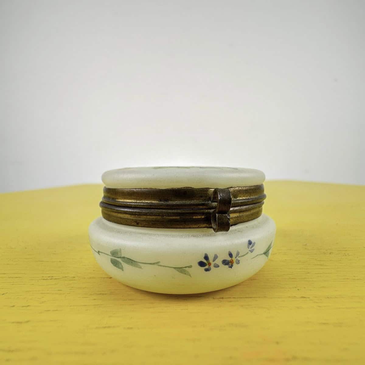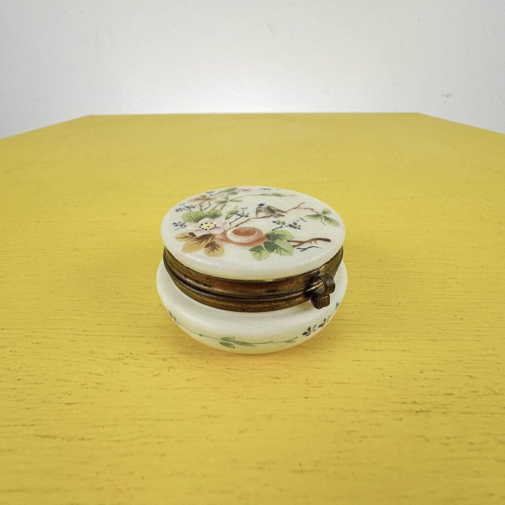 scatolina vintage portagioie in vetro opalino dipinta a mano