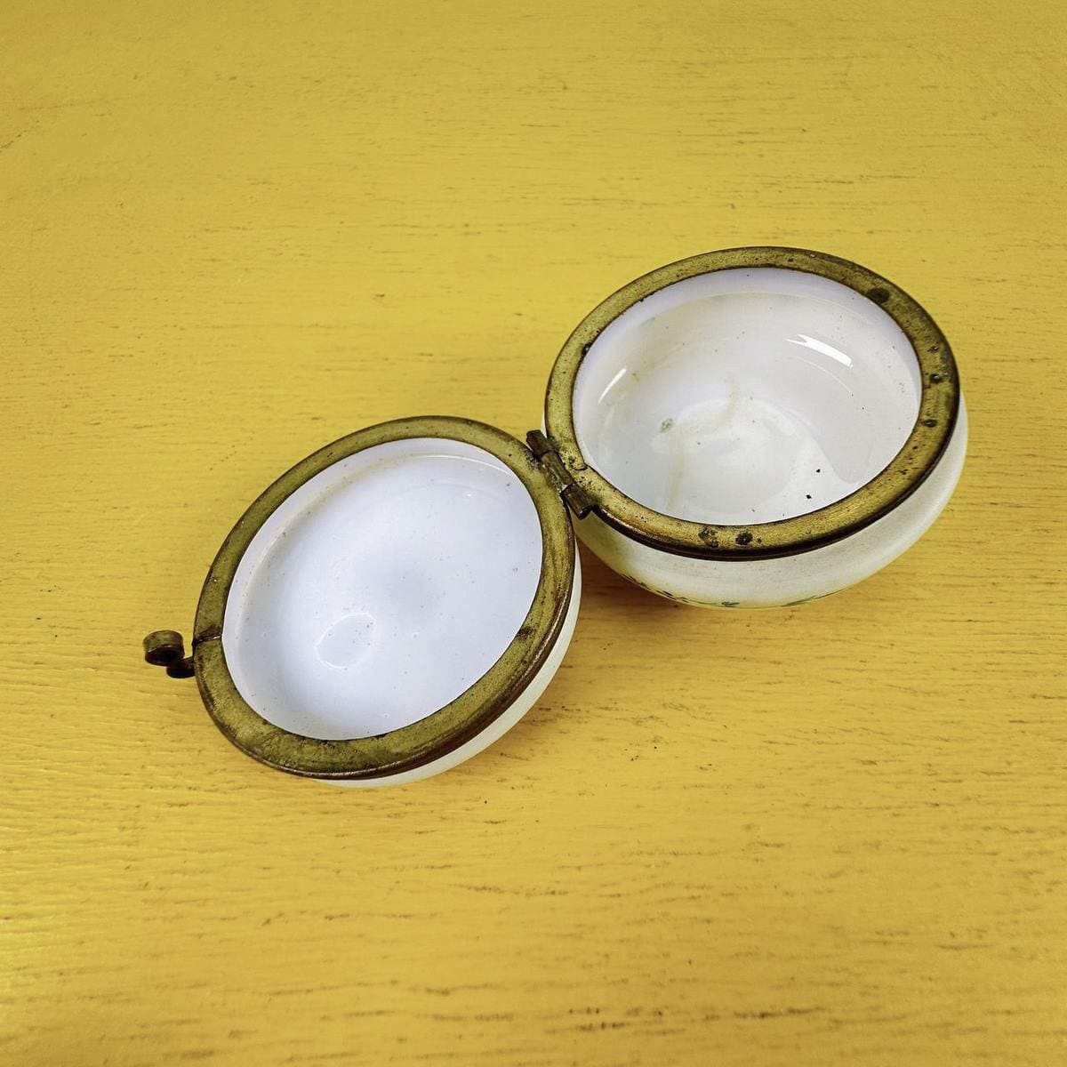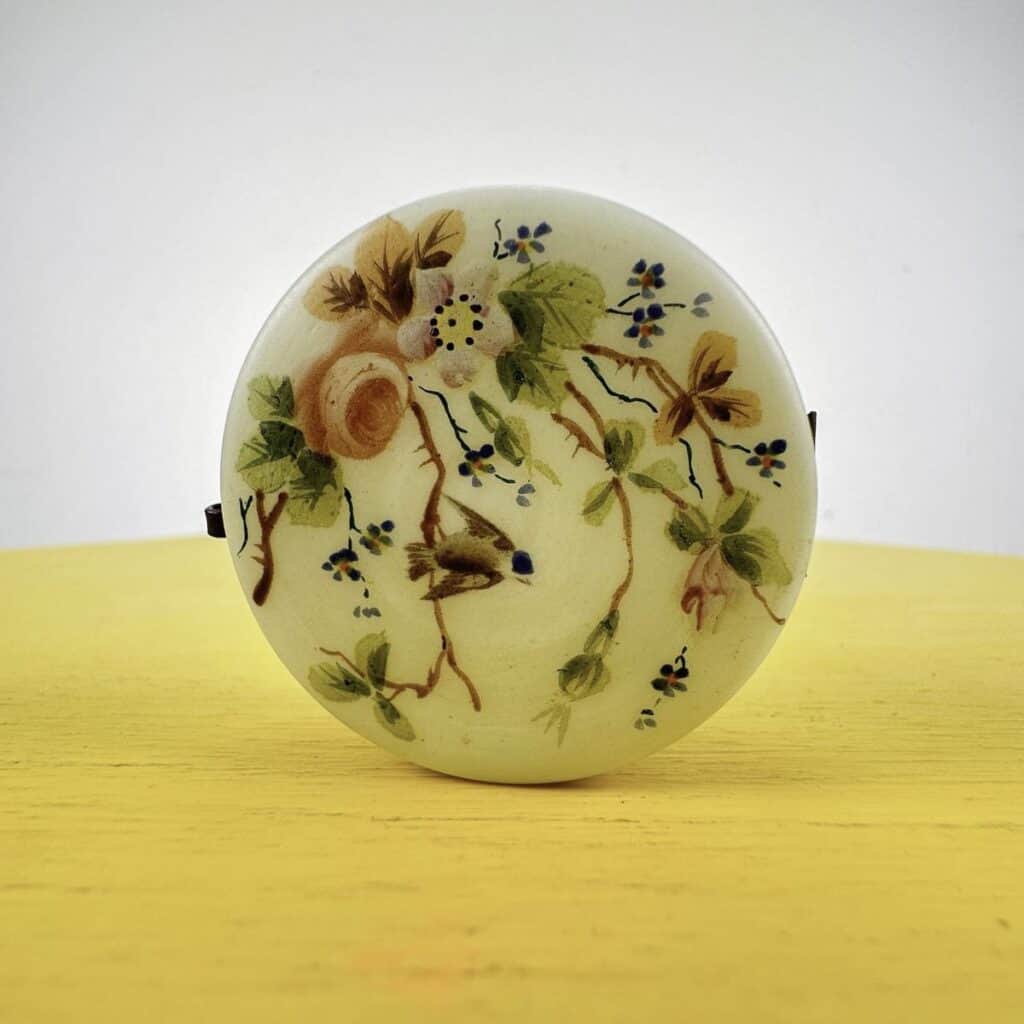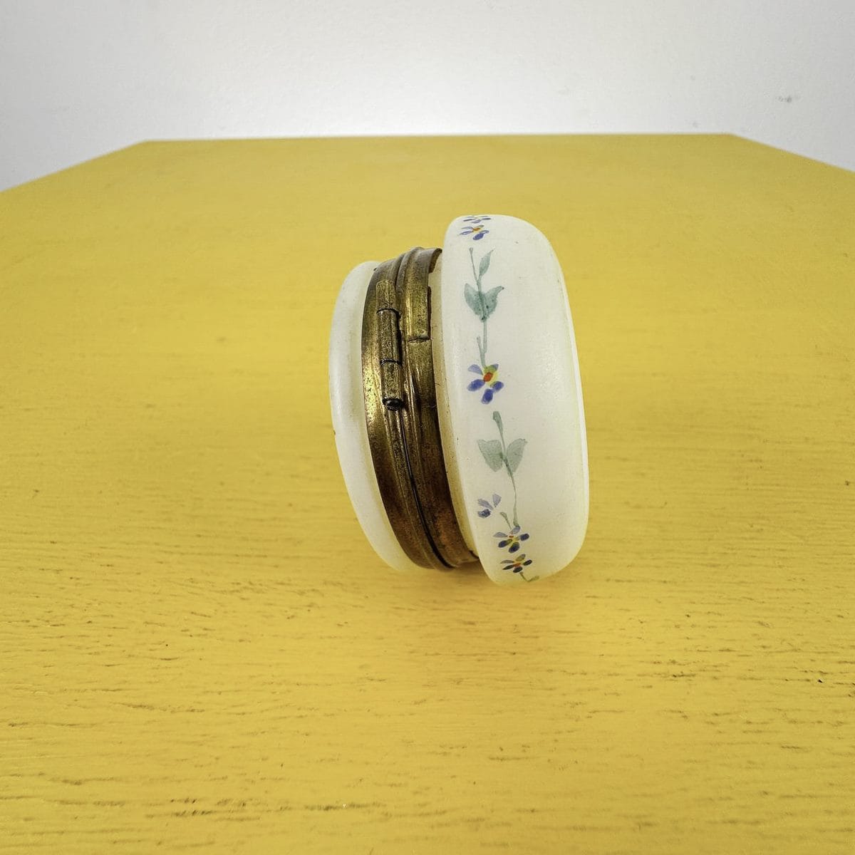 scatolina vintage portagioie in vetro opalino dipinta a mano