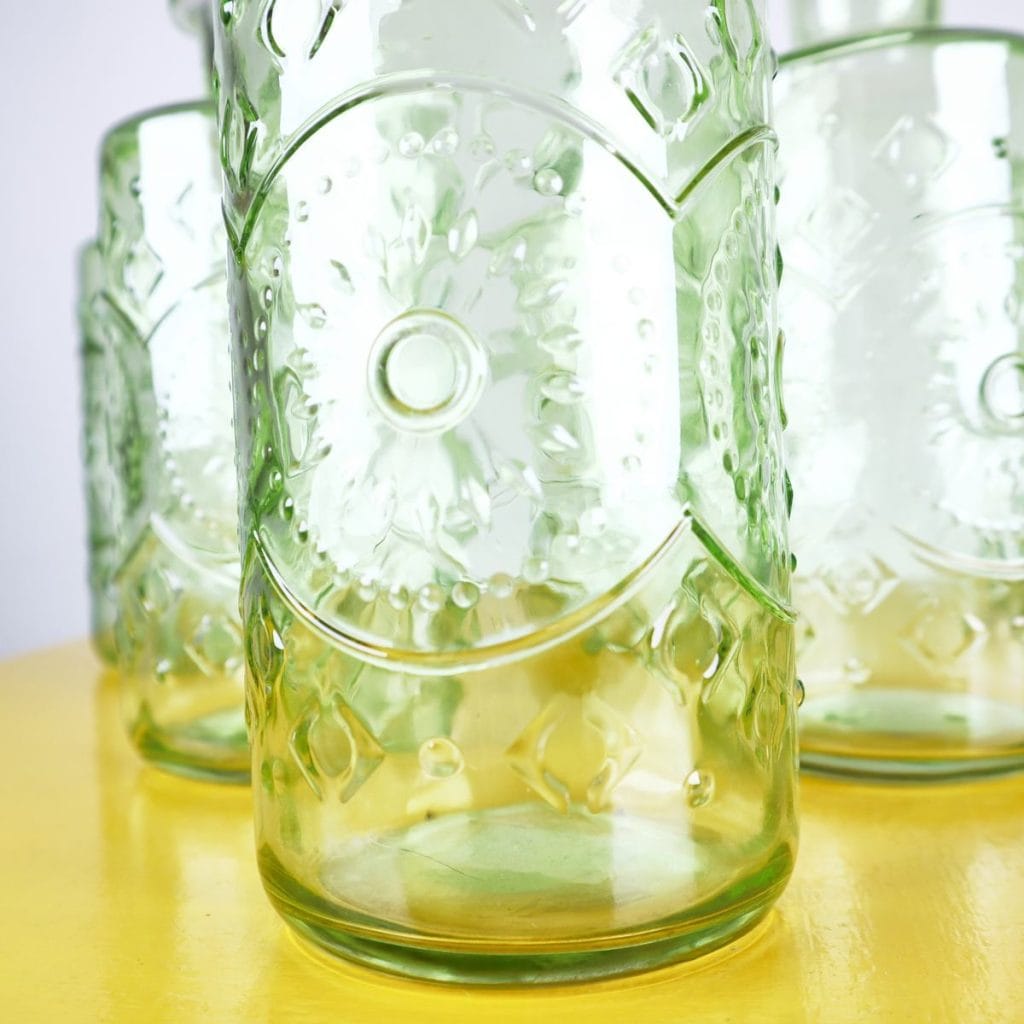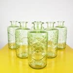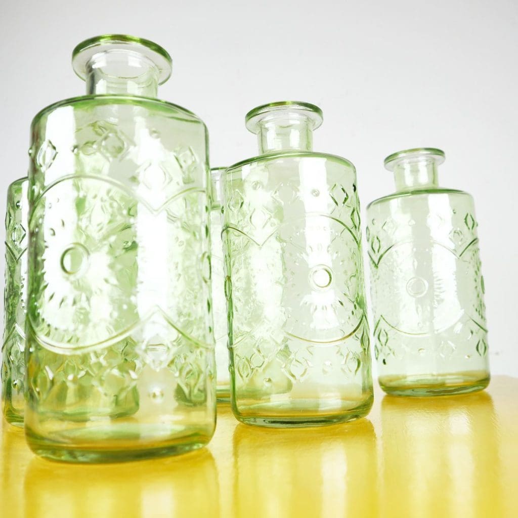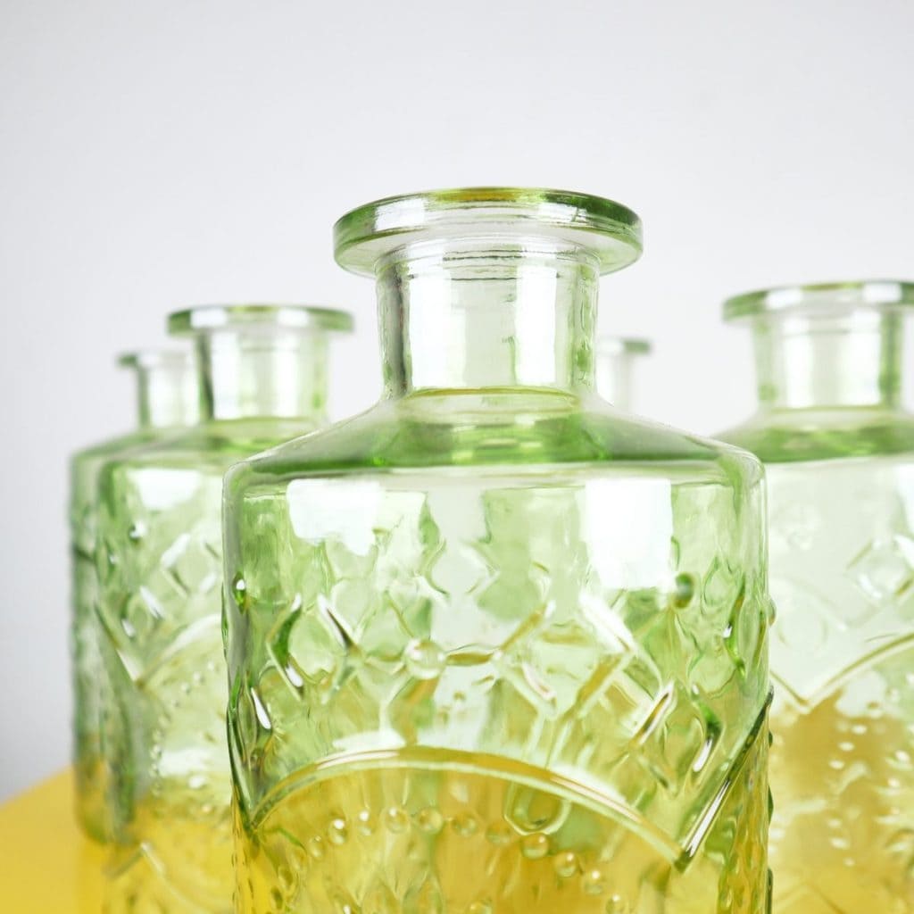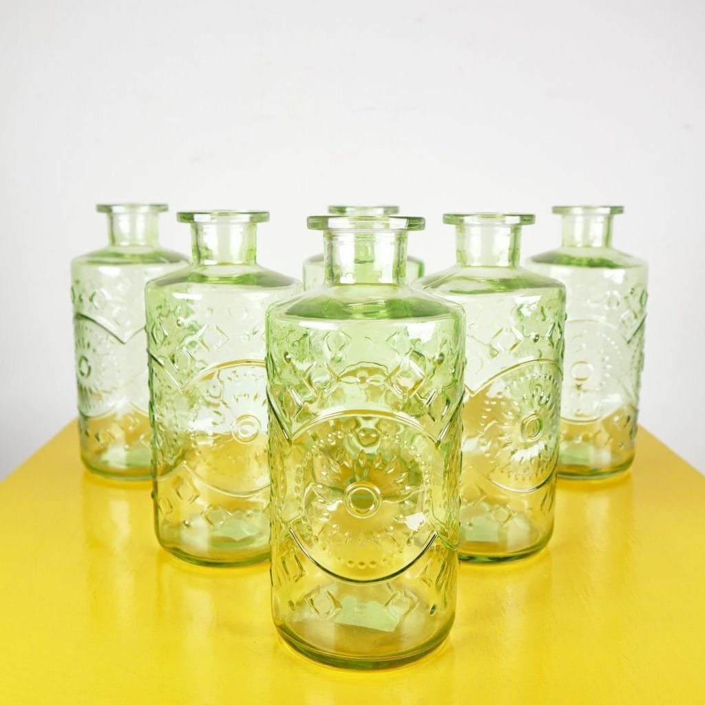 Set di 6 eleganti bottiglie in vetro verde