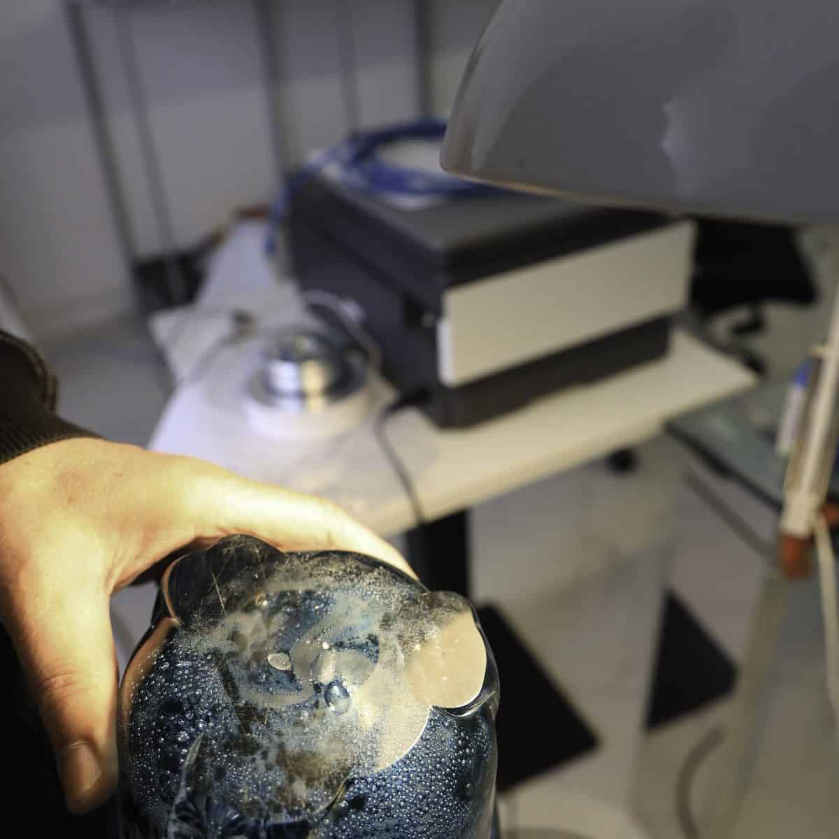 Vaso in vetro marina gemmata, FTB (Ferro, Toso, Barovier) Murano, anni '30. Fi