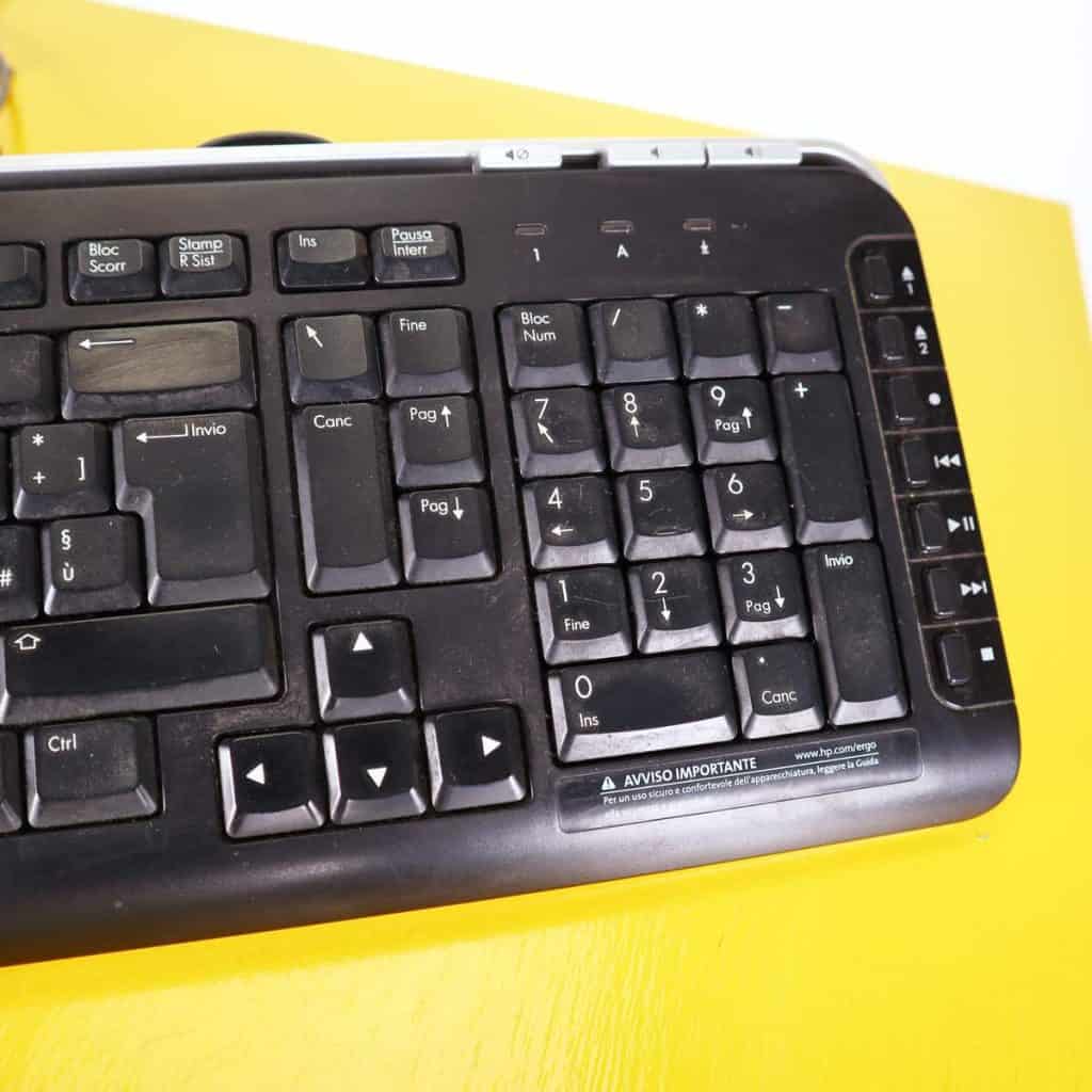 Questa tastiera HP KB-0630 e' un perfetto esempio di design funzionale e praticita'. Realizzata con materiali resistenti, presenta un layout di tasti ergonomico e accessi rapidi per un utili... Questa tastiera HP KB-0630 e' un perfetto esempio di design funzionale e praticita'. Realizzata con materiali resistenti, presenta un layout di tasti ergonomico e accessi rapidi per un utilizzo efficiente durante il lavoro. Il suo stile vintage la rende un pezzo interessante per coloro che apprezzano l'estetica re'tro. Nonostante segni di usura, perfettamente funzionante, questa tastiera e' ideale sia per un uso quotidiano in ufficio che per i collezionisti di tecnologia vintage. La sua composizione elegante e i tasti neri su fondo argento conferiscono un tocco di classe a qualsiasi scrivania. Altro