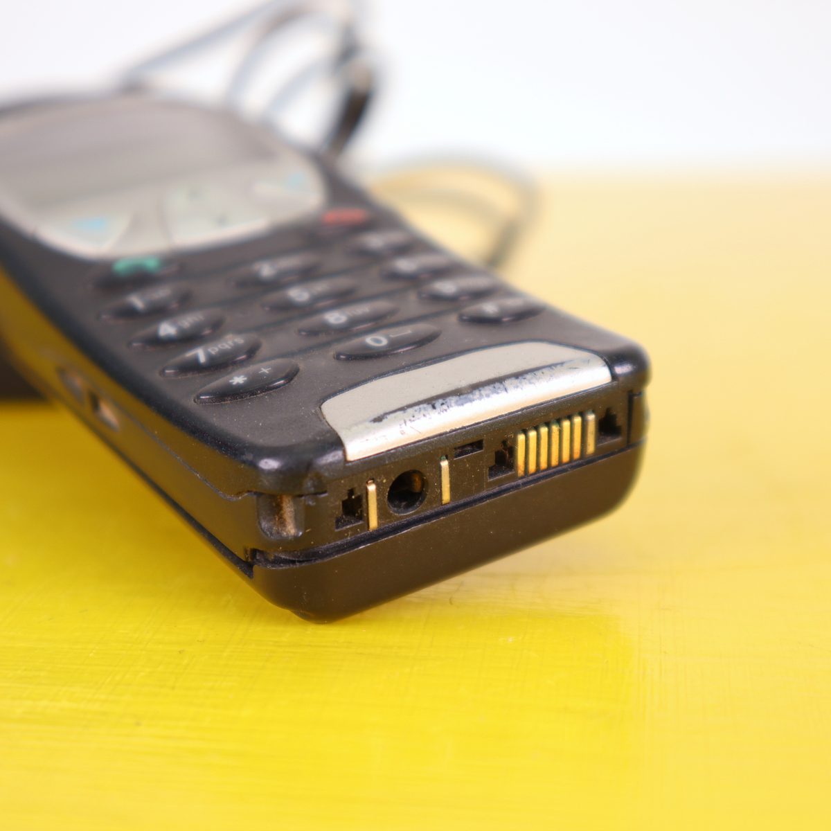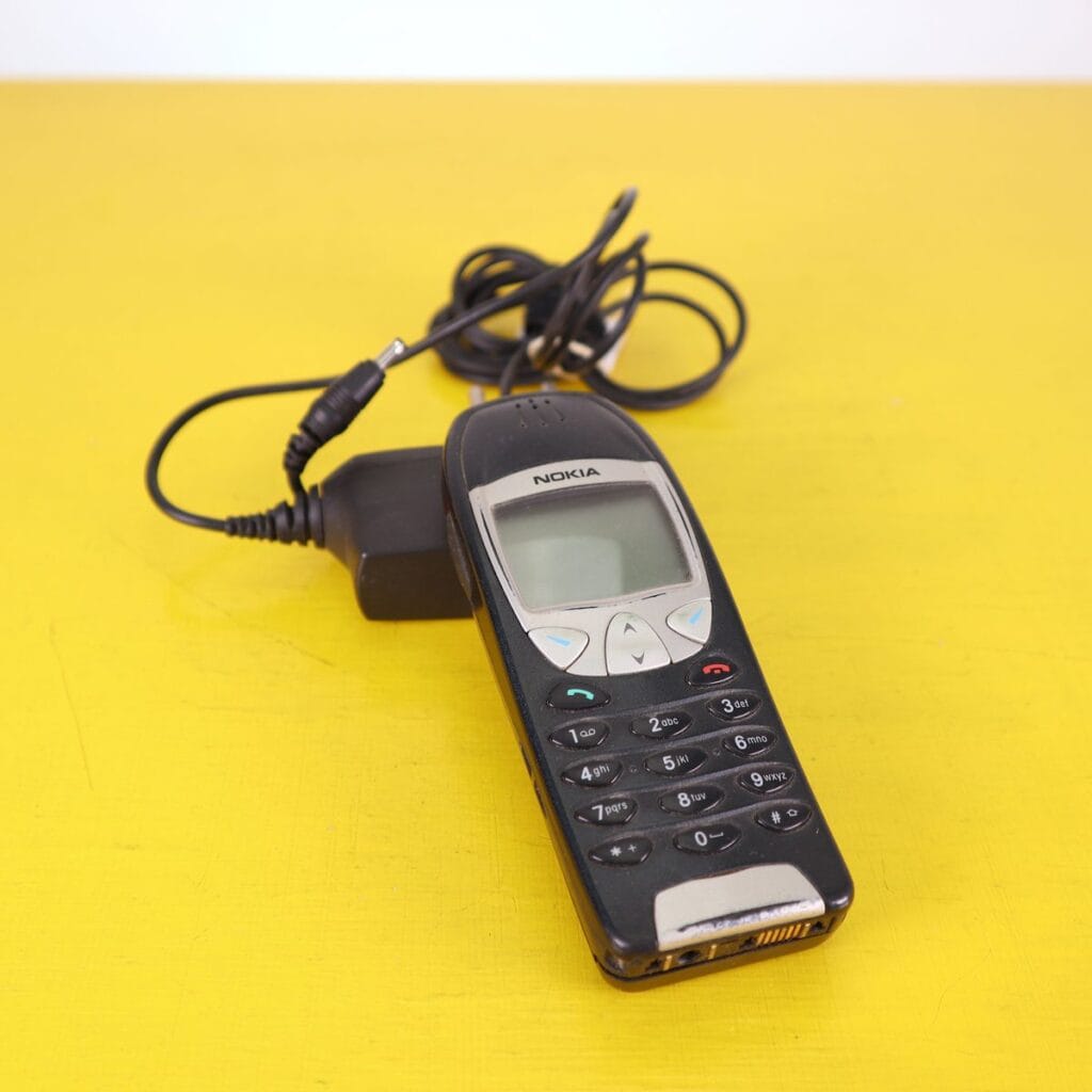 Iconico cellulare Nokia anni 2000 con caricabatterie