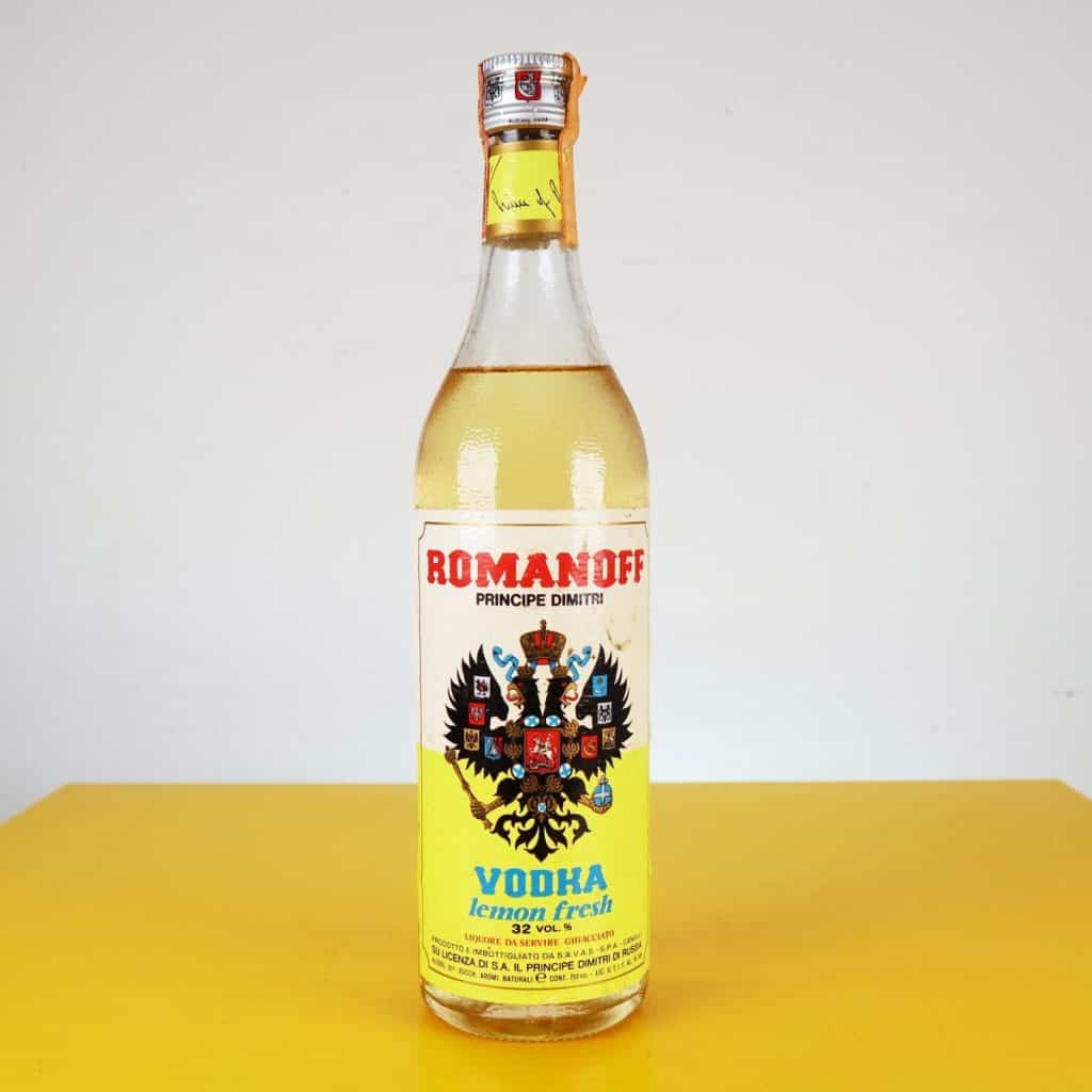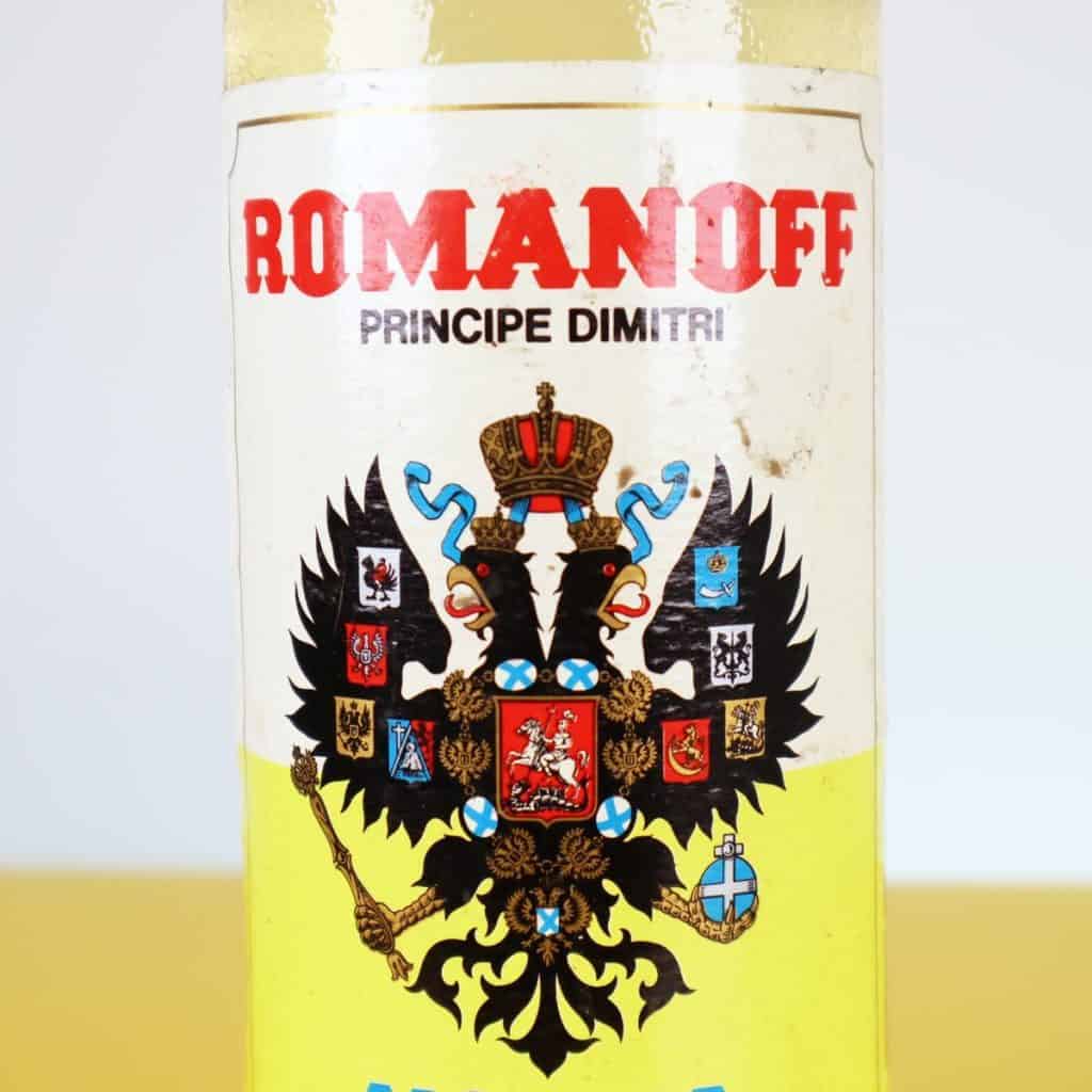 Scopri questa rara bottiglia di Vodka Romanoff, una bevanda che unisce il classico al moderno. Con un intrigante aroma di limone fresco, questa vodka si presenta in una bottiglia vintage dal design ca... Scopri questa rara bottiglia di Vodka Romanoff, una bevanda che unisce il classico al moderno. Con un intrigante aroma di limone fresco, questa vodka si presenta in una bottiglia vintage dal design caratteristico, richiamando l'eleganza di epoche passate. La bottiglia, da 750 cc, e' un perfetto esempio di arte grafica anni '70, decorata con uno stemma nobiliare. Sebbene non sia rimasta in perfette condizioni, la sua patina storica aggiunge un fascino unico all'oggetto. Ottima come pezzo da collezione o come elemento decorativo per bar e ristoranti vintage, questa vodka e' ideale per cocktail o degustazioni. Un vero pezzo da gustare e ammirare. Altro