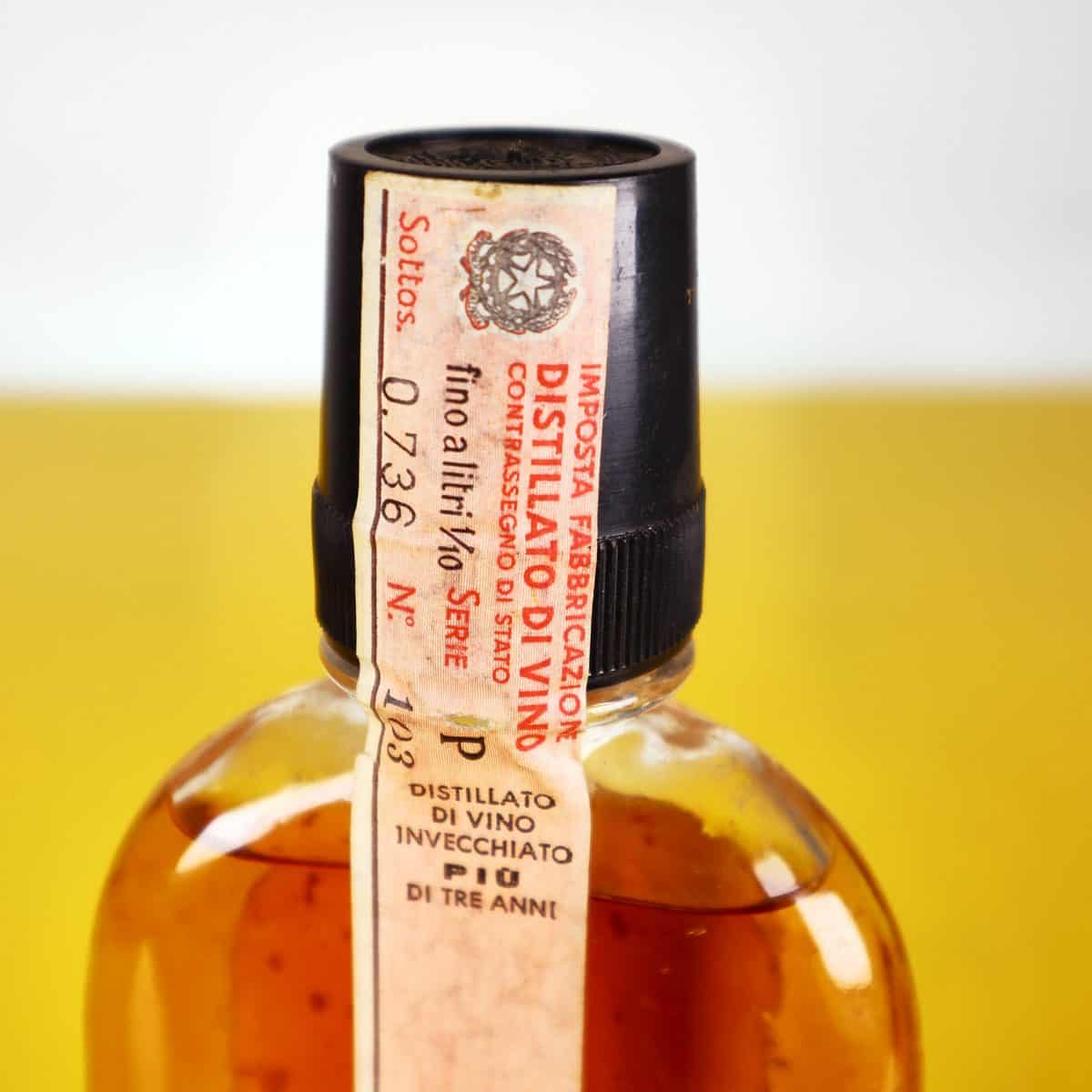 Elegante bottiglia di Brandy Vecchia Romagna