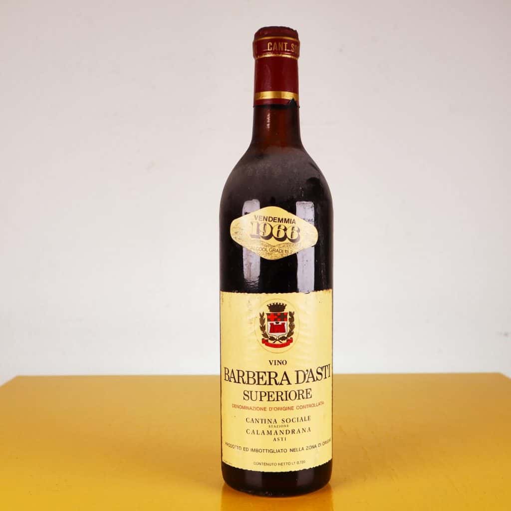 Scoprite l"eleganza del tempo con questa bottiglia di vino Barbera d"Asti, vendemmia 1966. Proveniente dalla Cantina Sociale Calamandrana, questa bottiglia è un perfetto esempio di come il passato pos... Scoprite l"eleganza del tempo con questa bottiglia di vino Barbera d"Asti, vendemmia 1966. Proveniente dalla Cantina Sociale Calamandrana, questa bottiglia è un perfetto esempio di come il passato possa convivere con il presente. Con un"etichetta vintage che trasmette la storia e la tradizione vinicola italiana, questa bottiglia è ideale per collezionisti e amanti del vino. La condizione originale suggerisce un leggero segno di usura, ma il suo fascino e il valore personale rimangono intatti. Ottima per occasioni speciali o come pezzo da esposizione, rappresenta un"opportunità unica per chiunque voglia aggiungere un tocco storico alla propria cantina. Altro