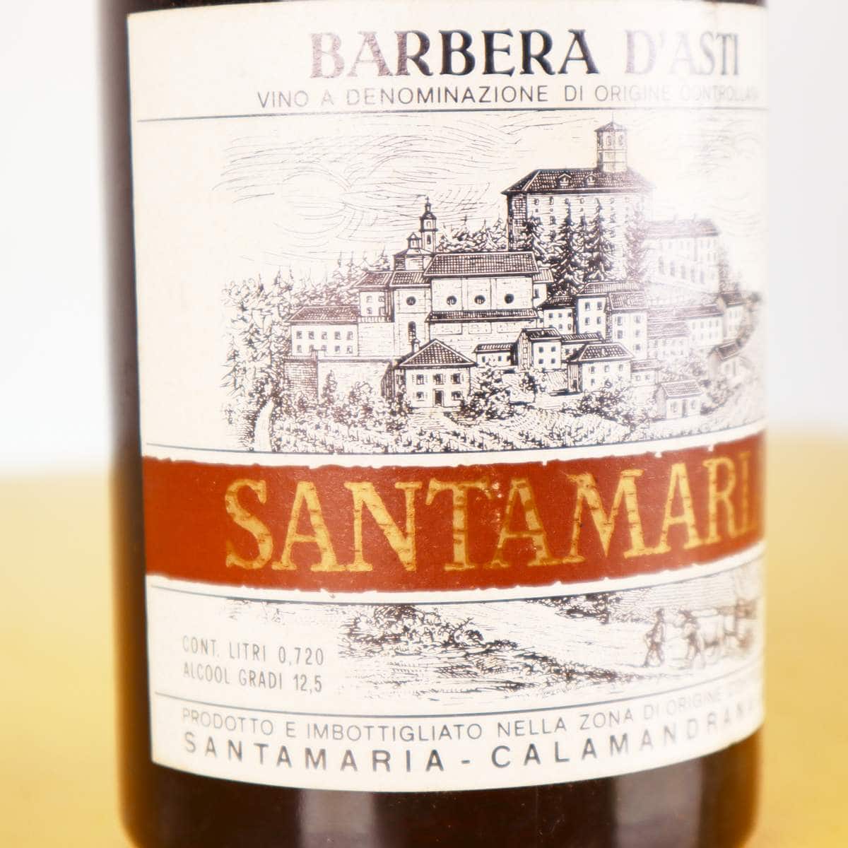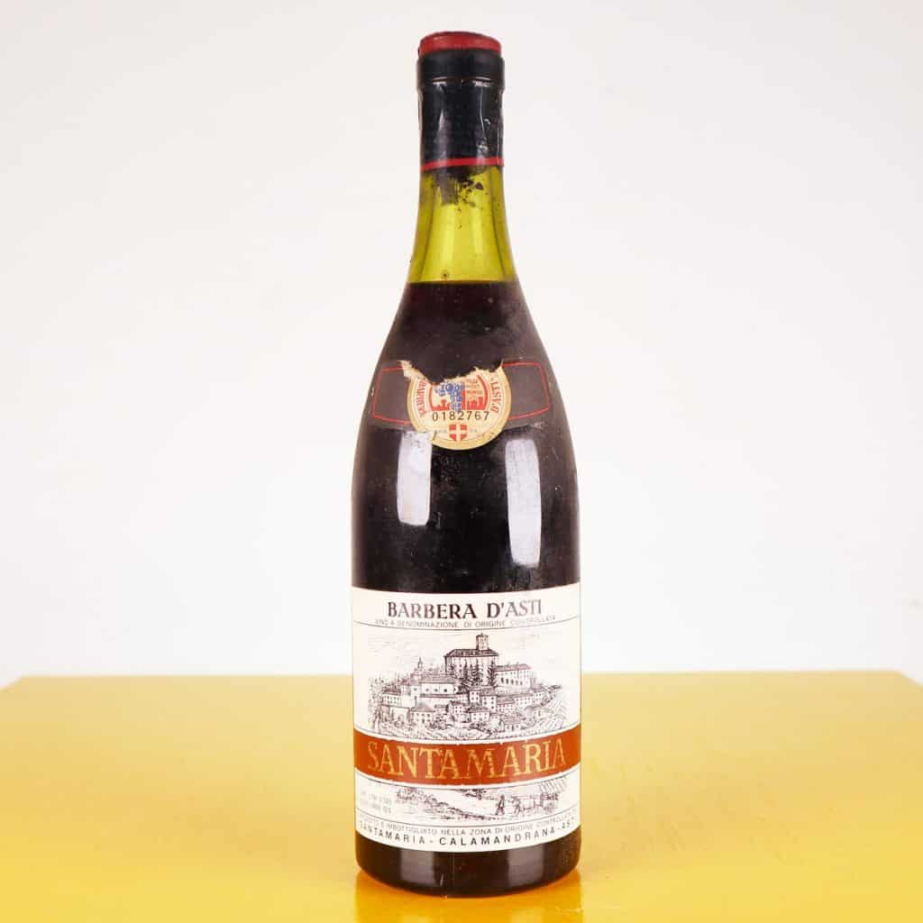 Questa esclusiva bottiglia di Barbera d"Asti presenta un design classico con etichetta storica, evocando la tradizione vinicola piemontese. La bottiglia, da 0,720 litri, è contrassegnata da un"etichet... Questa esclusiva bottiglia di Barbera d"Asti presenta un design classico con etichetta storica, evocando la tradizione vinicola piemontese. La bottiglia, da 0,720 litri, è contrassegnata da un"etichetta distintiva "SANTAMARIA", che aggiunge un tocco di autenticità storica. Con un contenuto alcolico di 12,5 gradi, è perfetta per gli intenditori di vini vintage. Le condizioni della bottiglia mostrano segni di usura, rendendola un elemento affascinante per i collezionisti. àˆ ideale da esporre in una cantina o come pezzo di arredamento vintage, evocando la storia e la cultura del vino italiano. Altro