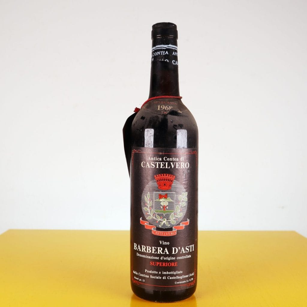 Scopri l"eleganza in una bottiglia di vino Barbera d"Asti, annata 1968, della storica Cantina Sociale di Castelboglione. Questa bottiglia, contraddistinta dall"etichetta originale, è un perfetto esemp... Scopri l"eleganza in una bottiglia di vino Barbera d"Asti, annata 1968, della storica Cantina Sociale di Castelboglione. Questa bottiglia, contraddistinta dall"etichetta originale, è un perfetto esempio di eccellenza vinicola italiana. La struttura d"acciaio della bottiglia si presenta in buone condizioni, con qualche segno del tempo e polvere, testimoni di un lungo riposo nella cantina. Ideale per collezionisti, o come dono speciale per occasioni uniche, può essere servita a tavola per conferire un tocco vintage a cene eleganti. Un"opera d"arte da non perdere per gli amanti del vino e del design autentico. Altro