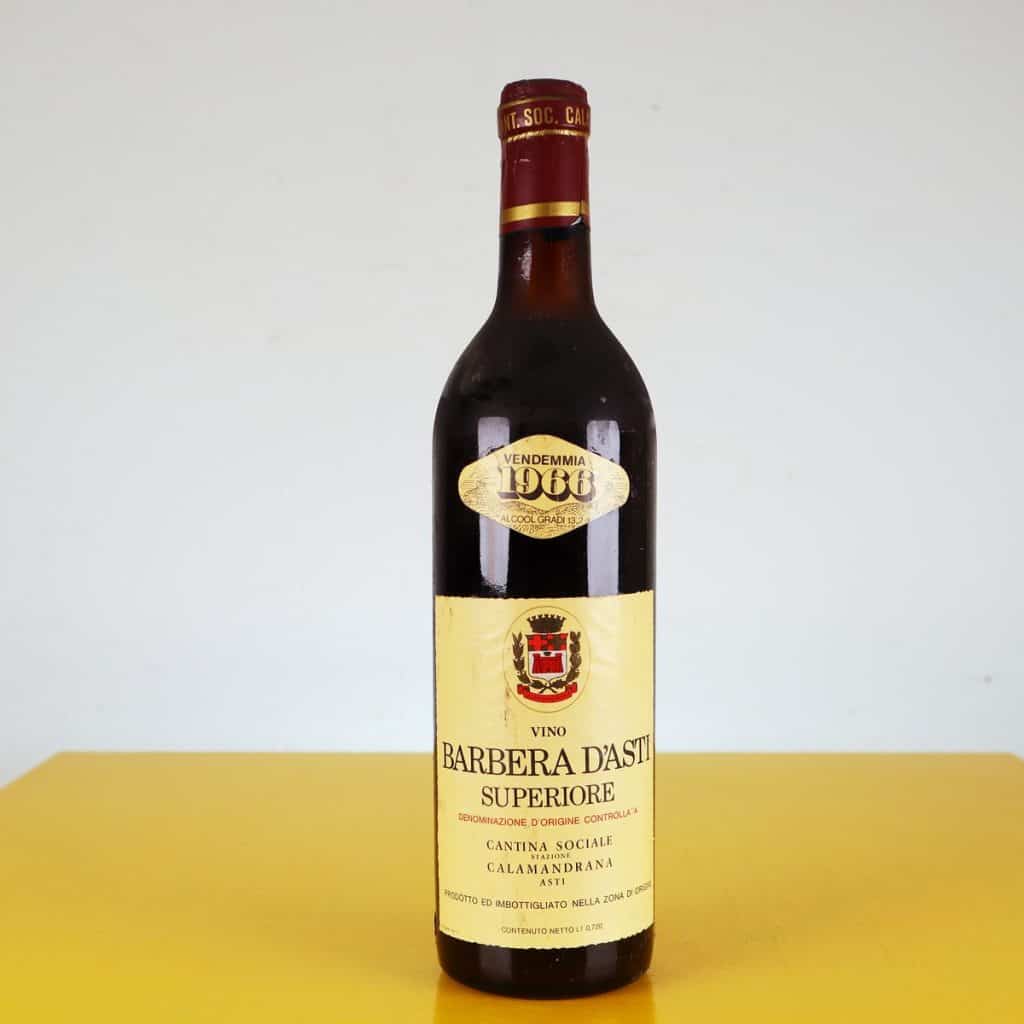 Scopri un autentico gioiello nella tua collezione: questa bottiglia di Barbera d"Asti Superiore, annata 1966, è un vero pezzo da intenditore. Prodotta dalla Cantina Sociale di Calamandrana, è insignit... Scopri un autentico gioiello nella tua collezione: questa bottiglia di Barbera d"Asti Superiore, annata 1966, è un vero pezzo da intenditore. Prodotta dalla Cantina Sociale di Calamandrana, è insignita di denominazione d"origine controllata, testimoniando l"eccellenza della viticoltura piemontese. La bottiglia, dal design classico, presenta un"etichetta vintage che evoca l"arte delle etichette vinicole dell"epoca. Sebbene presenti segni del tempo, con lievi graffi e residui di polvere, il suo fascino rimane inalterato. Perfetta per appassionati di vino vintage, collezionisti o come regalo speciale, è un ottimo accompagnamento per piatti robusti e formaggi stagionati. Altro