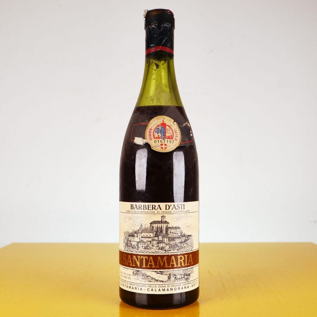 Scoprite il gusto autentico dell"Italia con questa preziosa bottiglia di Barbera d"Asti Santamaria. Questa bottiglia di vino, datata e collezionabile, presenta un"etichetta storica dettagliata, rappre... Scoprite il gusto autentico dell"Italia con questa preziosa bottiglia di Barbera d"Asti Santamaria. Questa bottiglia di vino, datata e collezionabile, presenta un"etichetta storica dettagliata, rappresentante un paesaggio collinare tipico della zona di provenienza. La bottiglia, in vetro scuro, è contrassegnata da un sigillo originale che ne attesta la genuinità. Ideale per gli intenditori o come pezzo da collezione, il vino presenta note di frutta rossa e una leggera acidità, perfette per accompagnare piatti di carne. Conservato in buone condizioni nonostante la sua età, può rivelarsi un ottimo investimento per gli appassionati di vini e antiquariato. Altro