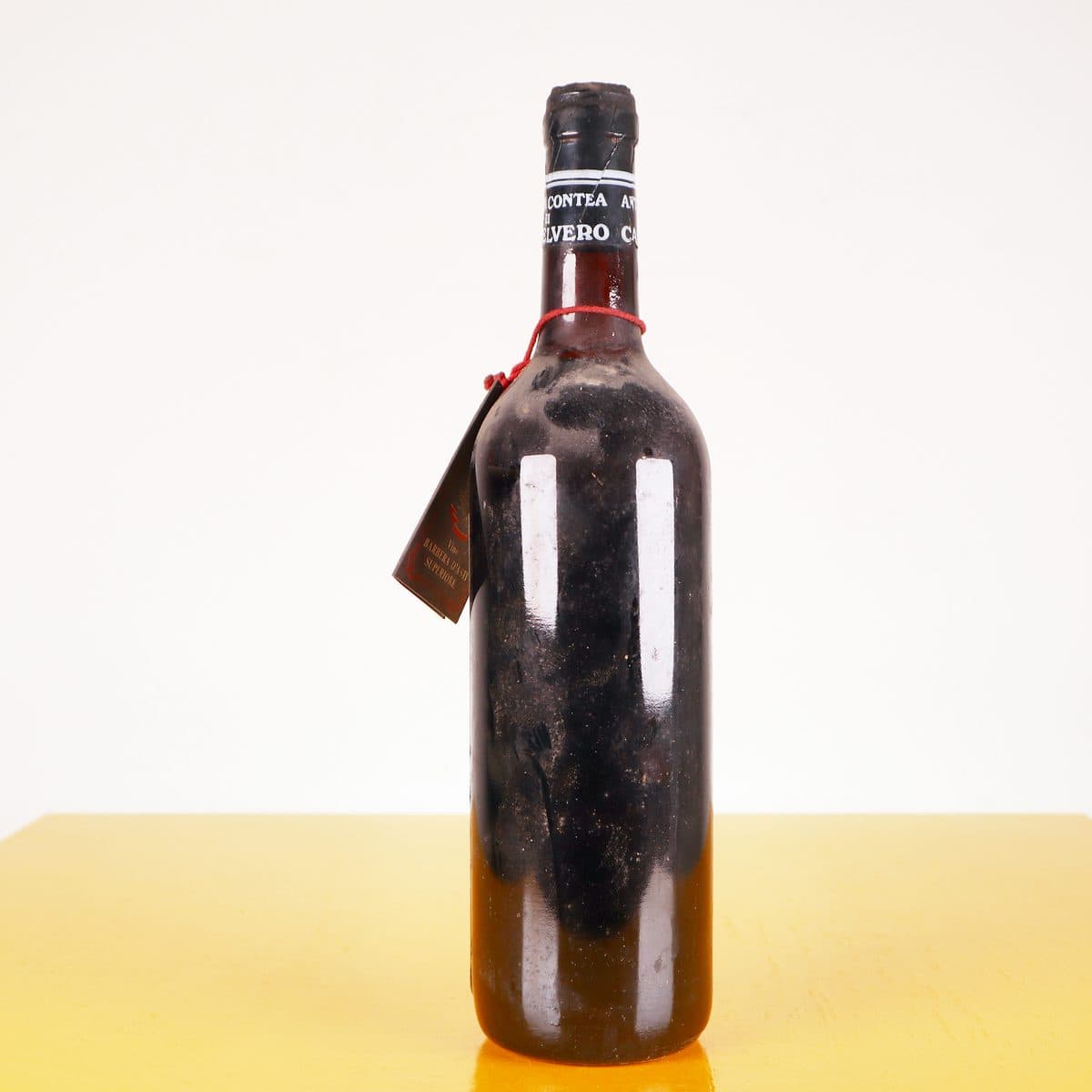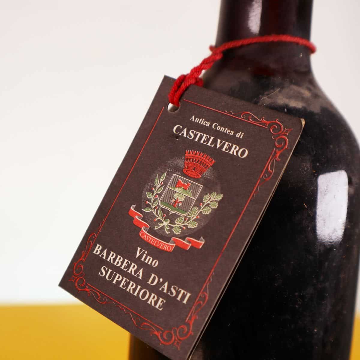 Questa rara bottiglia di vino Barbera d"Asti, proveniente dall"Antica Contea di Castelvero, rappresenta un"autentica testimonianza di produzione vinicola artigianale. Imbottigliata nel 1970, è contrad... Questa rara bottiglia di vino Barbera d"Asti, proveniente dall"Antica Contea di Castelvero, rappresenta un"autentica testimonianza di produzione vinicola artigianale. Imbottigliata nel 1970, è contraddistinta da un"etichetta vintage che mostra il logo distintivo e l"anno di produzione con orgoglio. La bottiglia si presenta con una patina come segno del tempo trascorso, suggerendo una storia ricca per gli amanti del vino e i collezionisti. Perfetta per essere esposta in un contesto di design o usata come pezzo unico per una cena speciale, questa prelibatezza è un tributo alla tradizione vinicola italiana. Altro