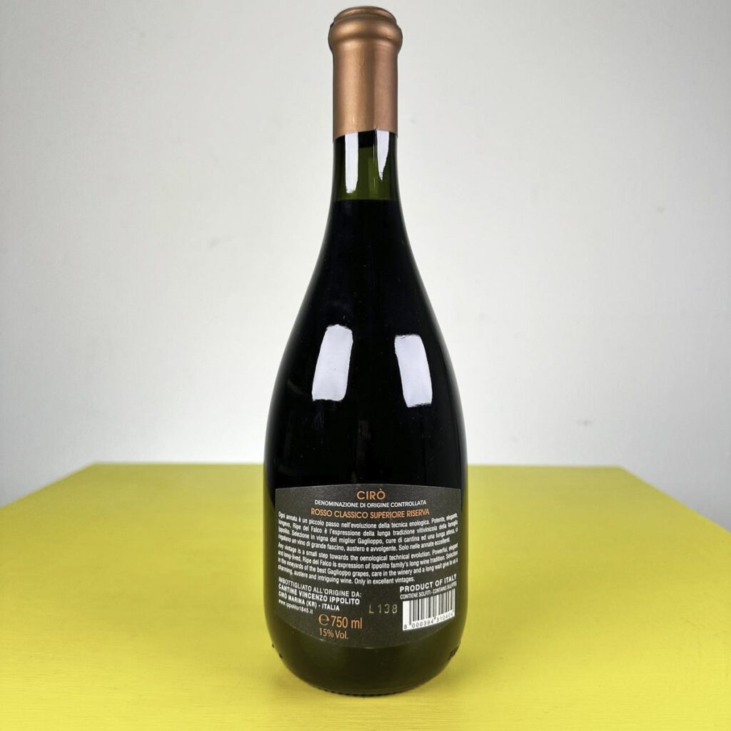 bottiglia vino ciro” riserva ripe del falco 2006