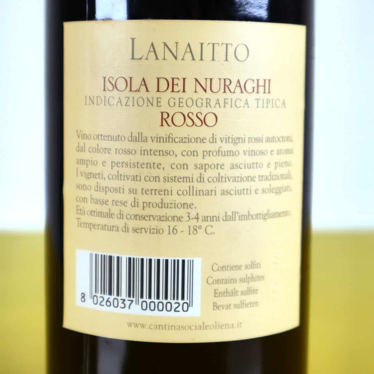 bottiglia vino rosso lanaitto isola dei nuraghi 2009