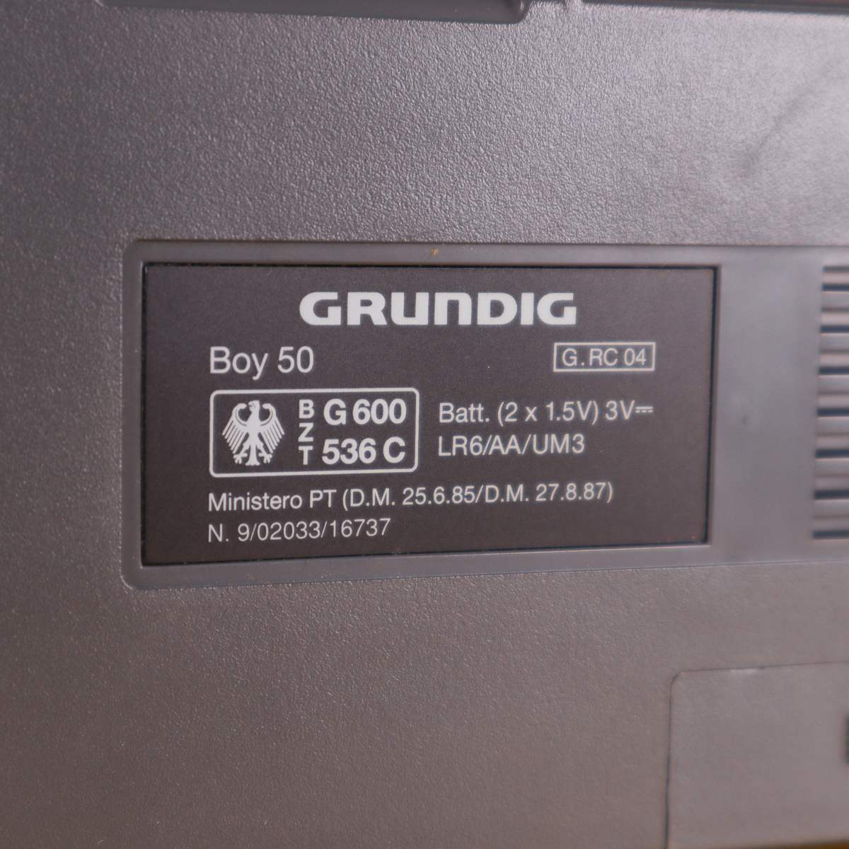 Scopri il fascino del passato con questo radioregistratore portatile Grundig Boy 50, un icona della tecnologia degli anni "80. Questo modello, realizzato in plastica resistente, è perfetto per gli ama... Scopri il fascino del passato con questo radioregistratore portatile Grundig Boy 50, un icona della tecnologia degli anni "80. Questo modello, realizzato in plastica resistente, è perfetto per gli amanti del vintage e della musica. Caratterizzato da un design compatto e funzionale, offre sia la ricezione AM che FM, rendendolo un compagno ideale per ascoltare la tua musica preferita ovunque. Presenta una scala lineare per una facile sintonizzazione e un'antenna estensibile per una migliore ricezione. Le condizioni sono buone, con leggeri segni d"uso che ne evidenziano il carattere vintage. Perfetto per collezionisti e per chi desidera portare un pezzo di storia nella propria casa. Altro